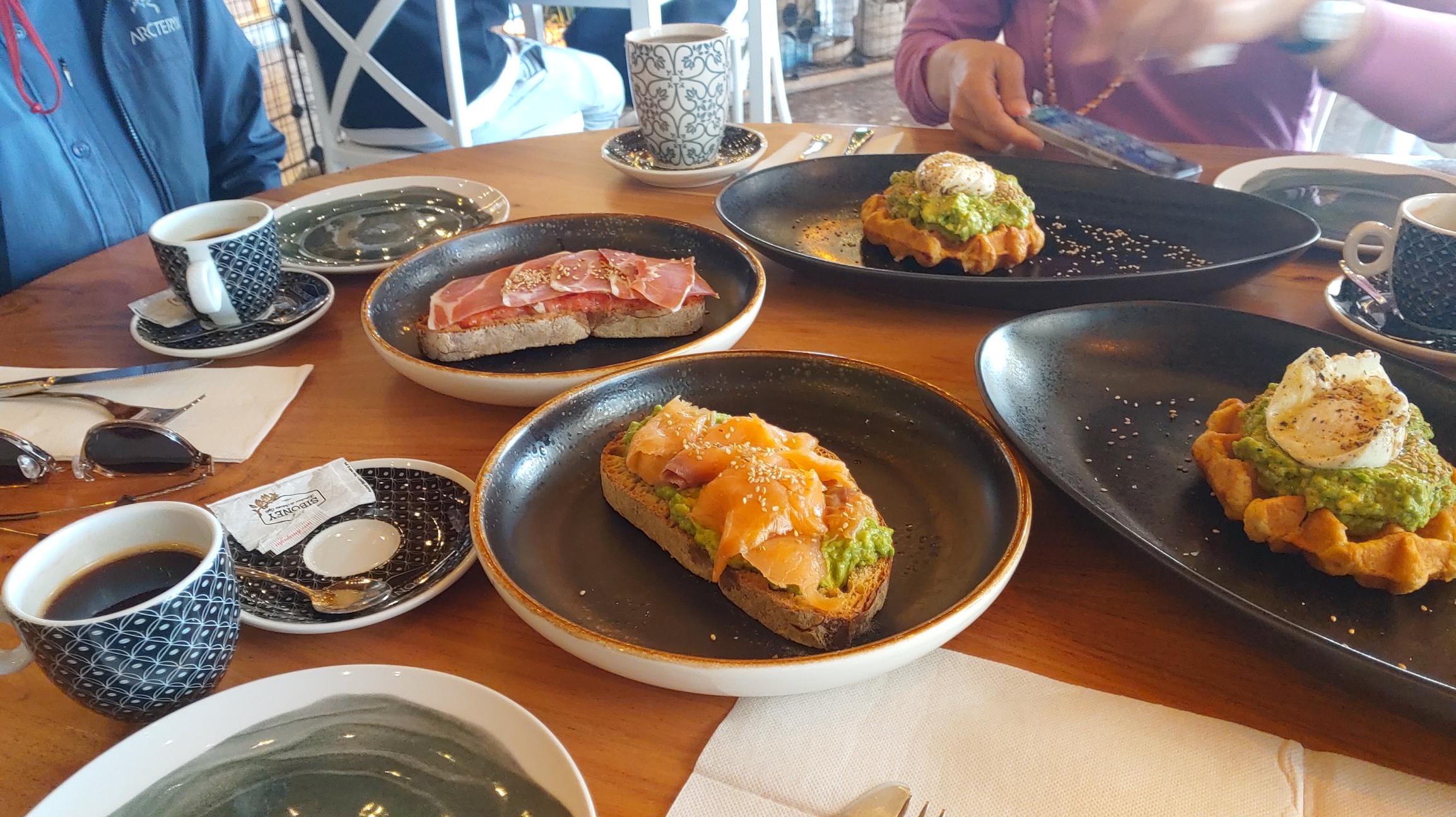 트렌디한 아침 식사. 스페인 Tui 에 도착해서.