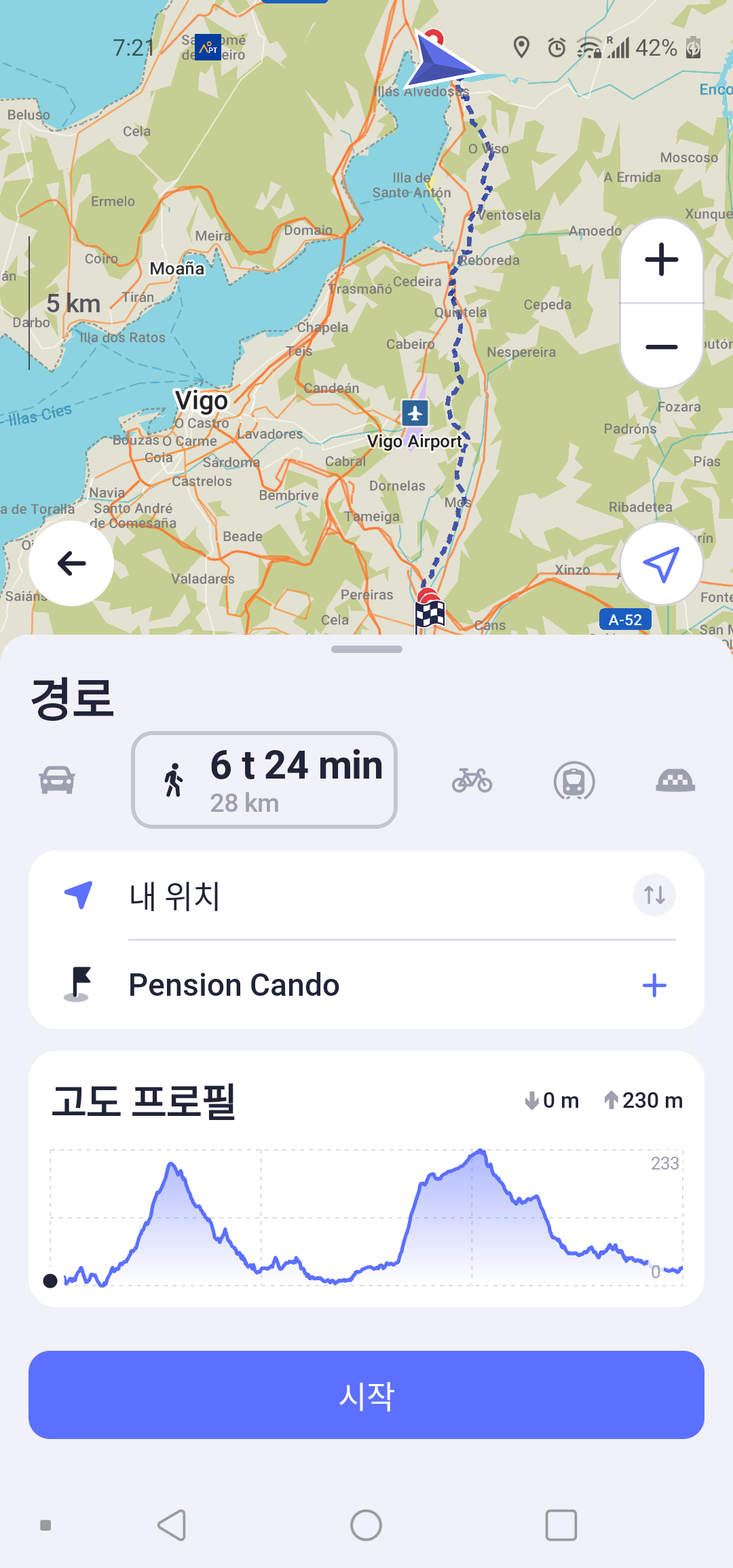 28 km 를 걸었더. 42000보 정도
