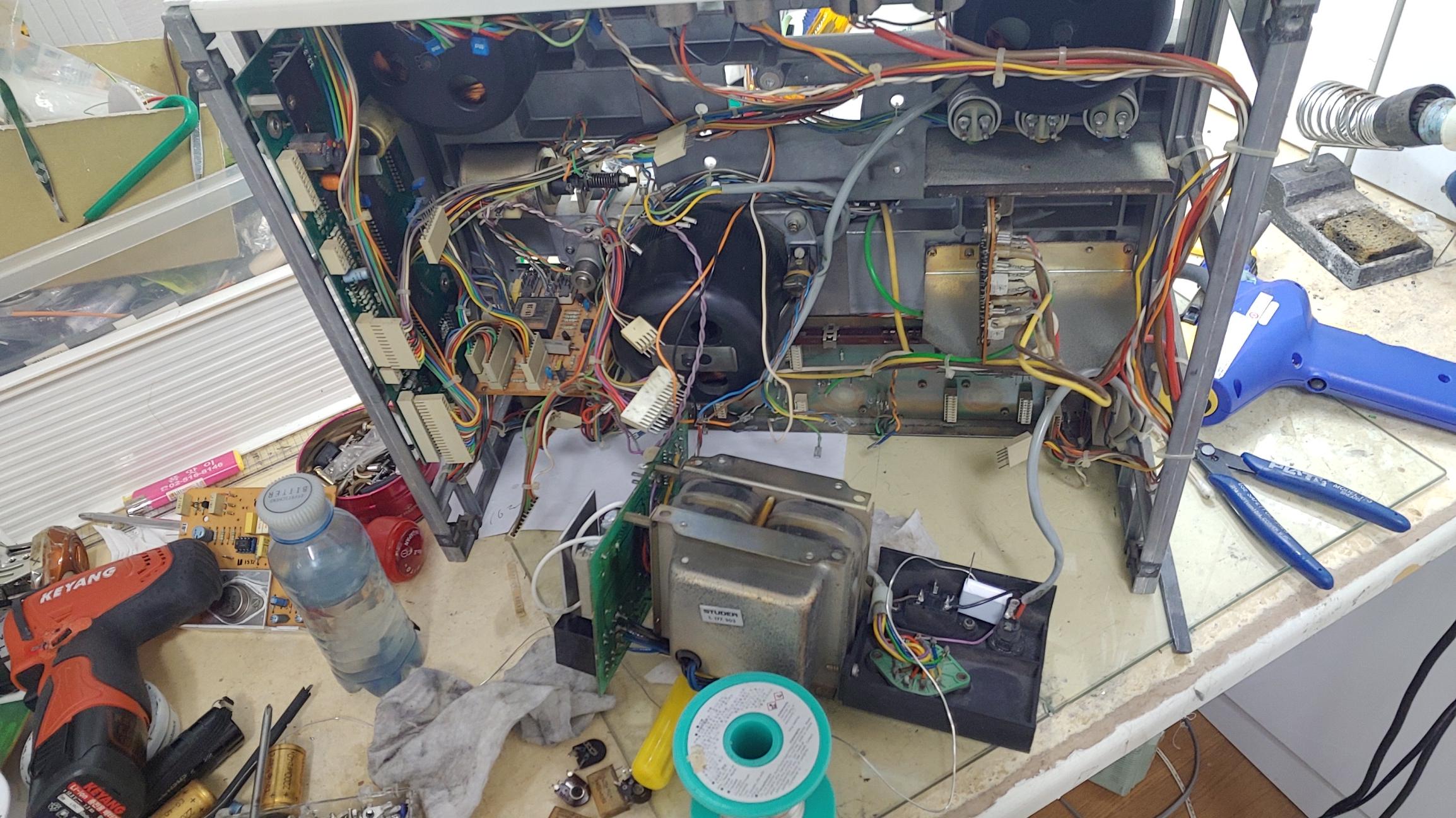 재생 및 모니터 회로 부분에 대한 보드의 부품 개조 완료된 모습.