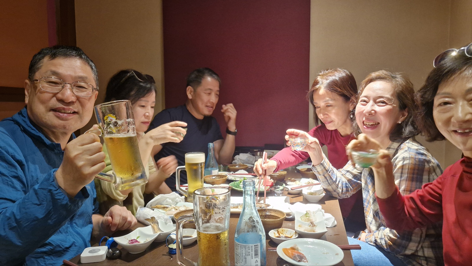 그래도 3일 내내 청명한 날씨에 2만보 이상 많이 걷고 도미밥 정식, 제철 모듬회 등 해산물 요리와 지역 사케및 생맥주 등으로 먹방 여행 해서 다들 만족