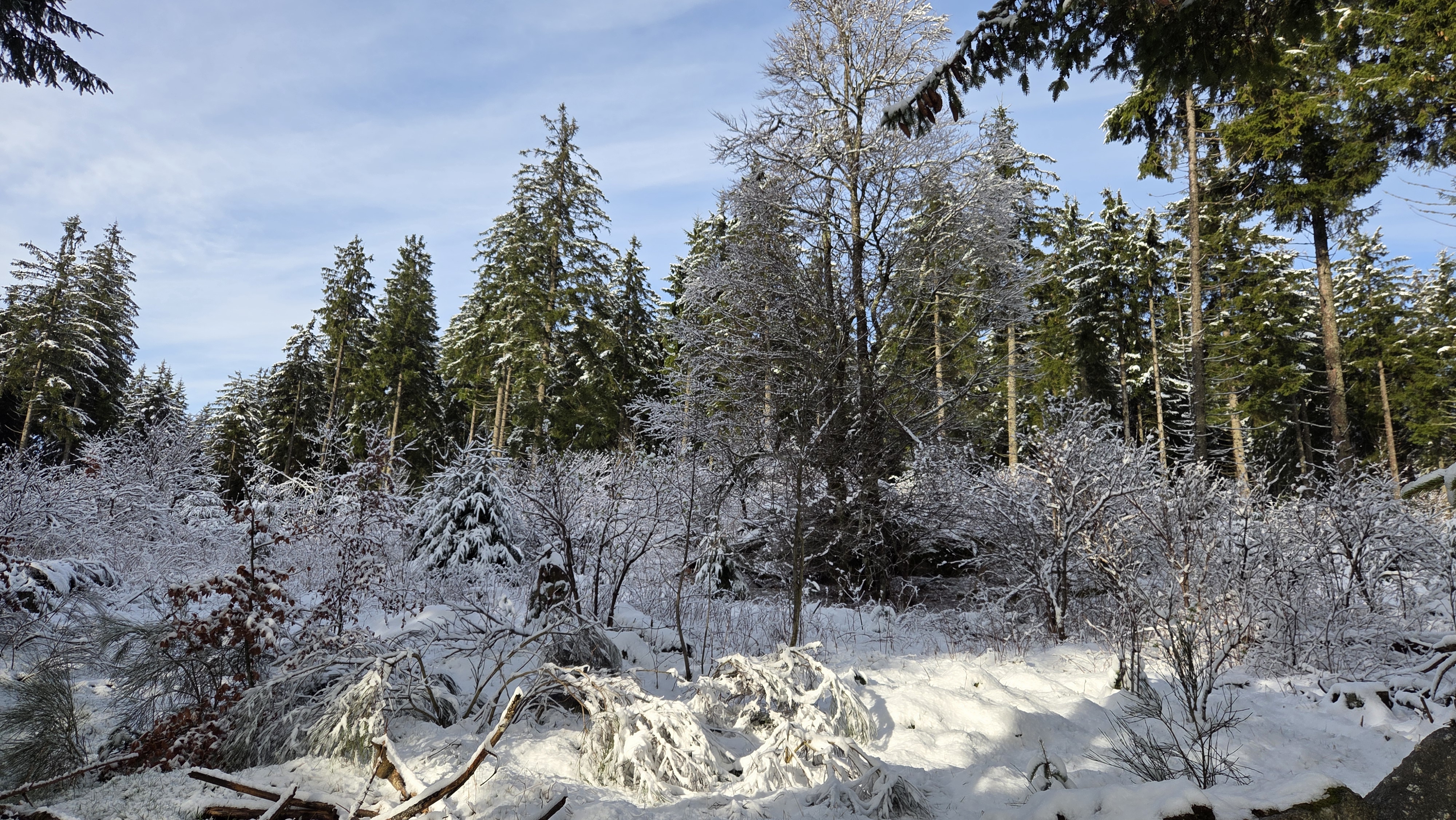 밤새 전날의 비가 눈으로 변하여 아침에 일어나니 겨울 하얀 풍경으로