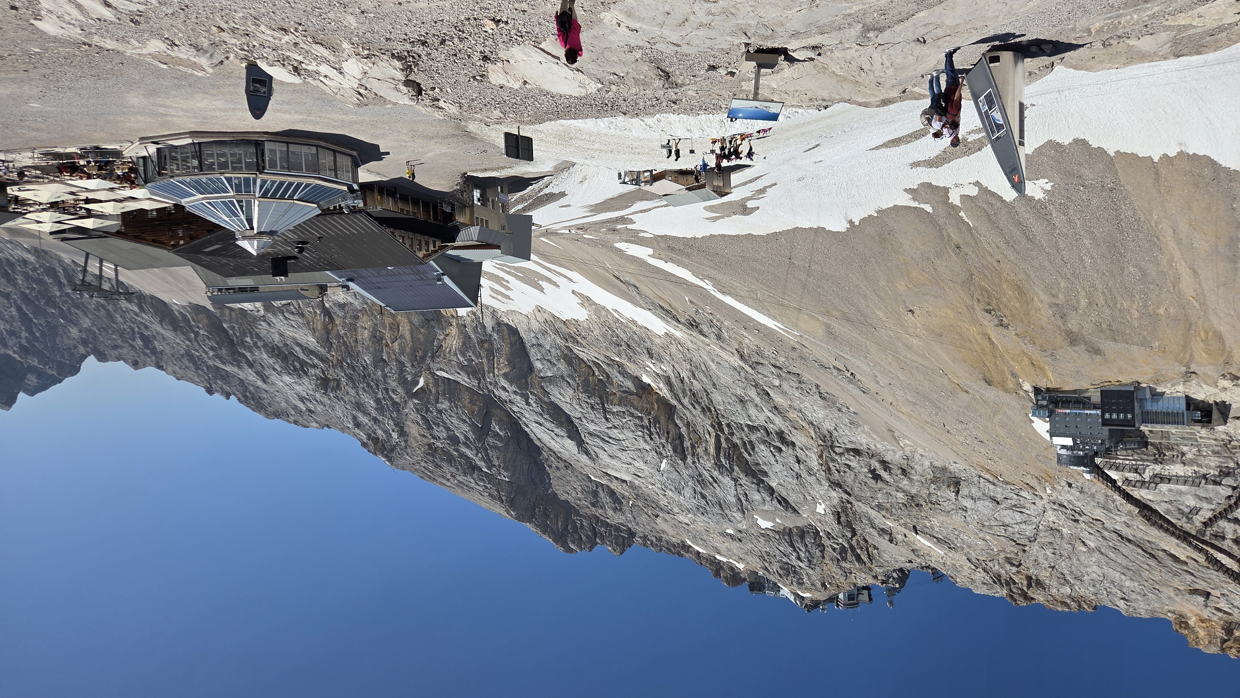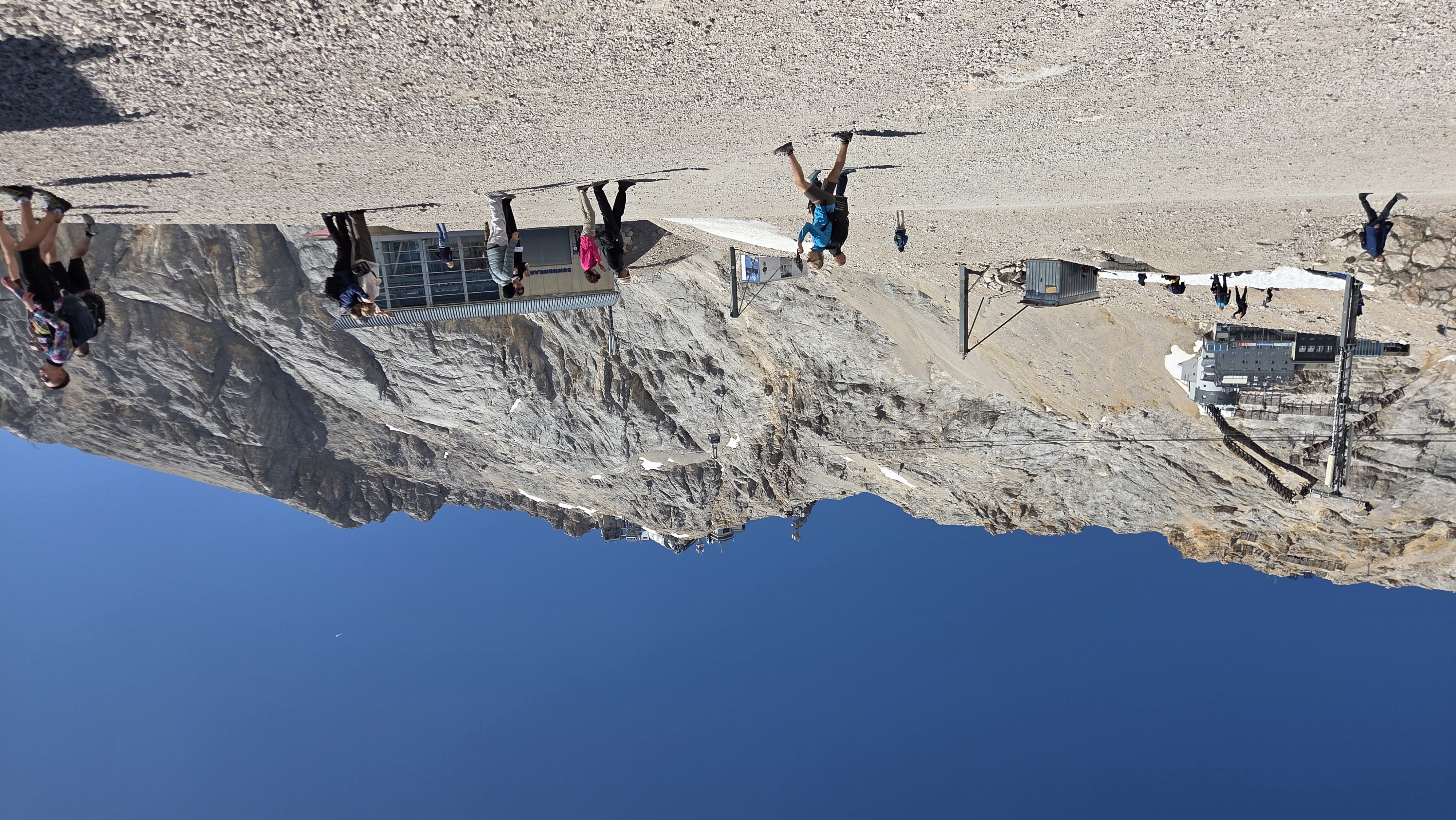 산악 열차를 타고 약 한 시간 정도 올라간 후 케이블카로 바꿔 타고 10분 정도 올라가면 약 3000 m 높이의 독일 최고봉에 도달한다