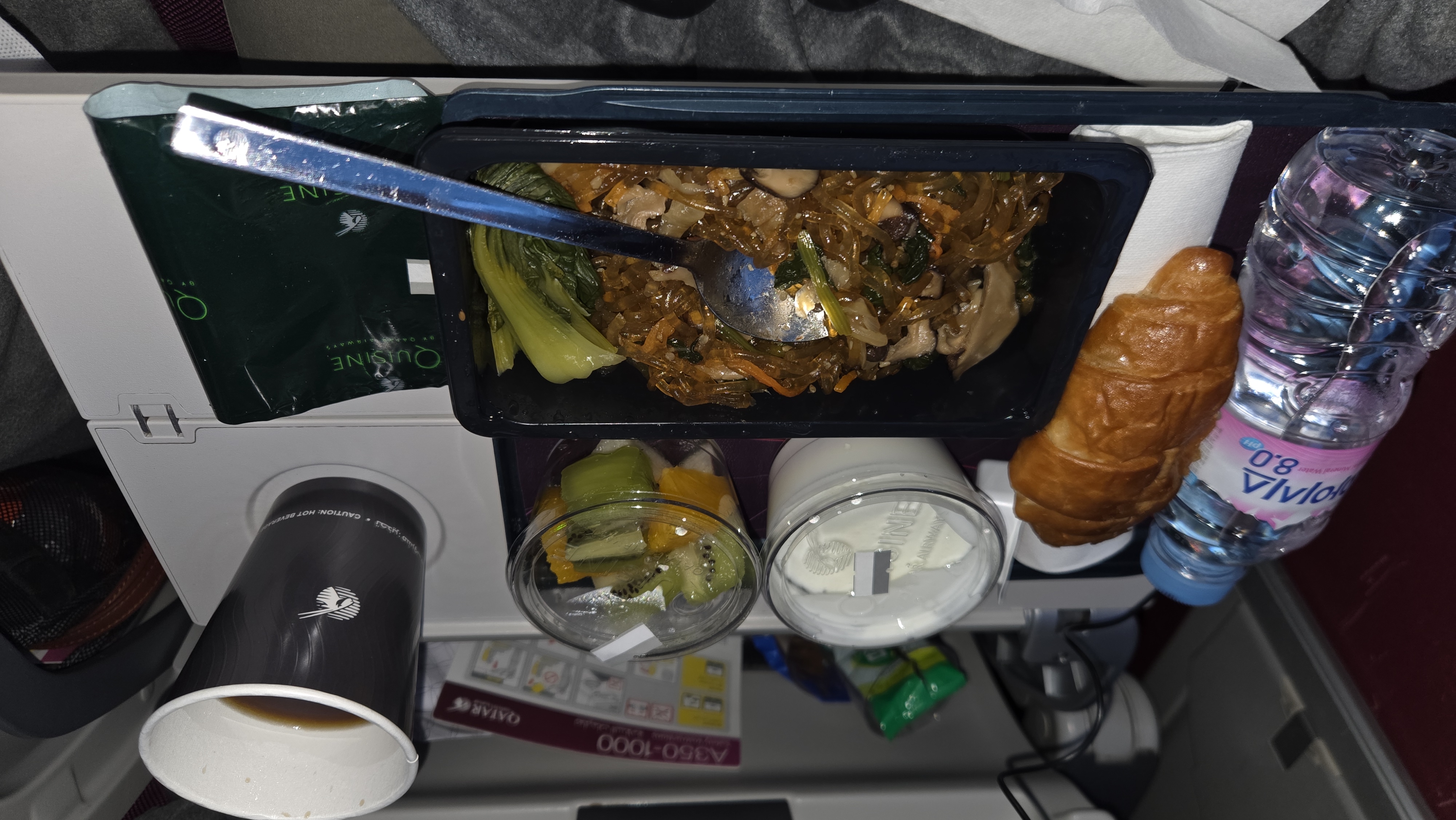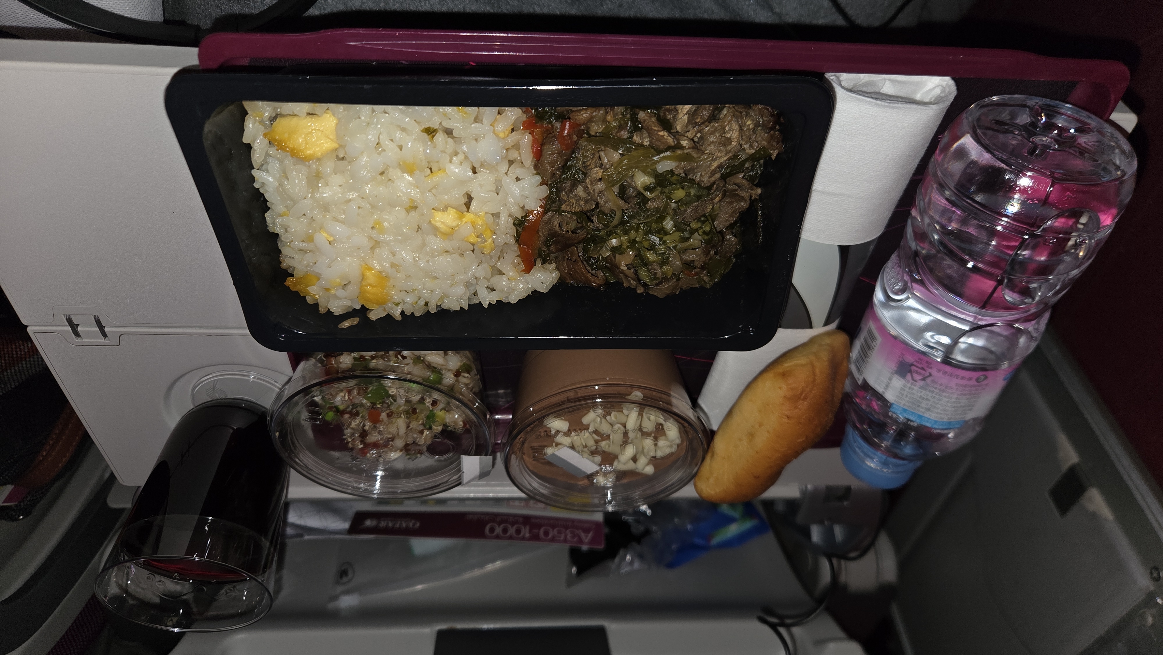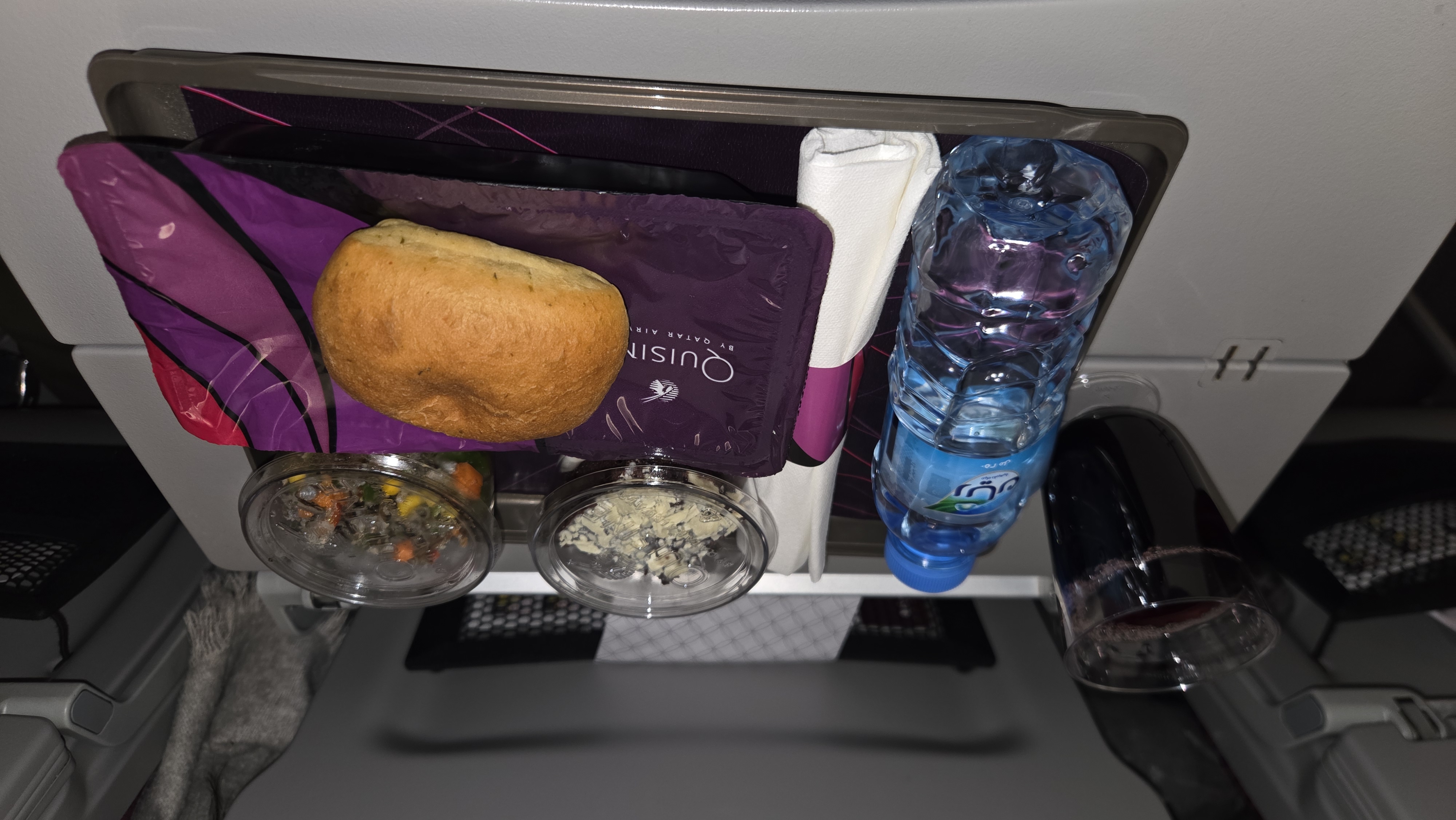 도하에서 아테네까지 4시간 15분 비행이었지만 훌륭한 정식 식사가 제공되었다. 포도주와 함께