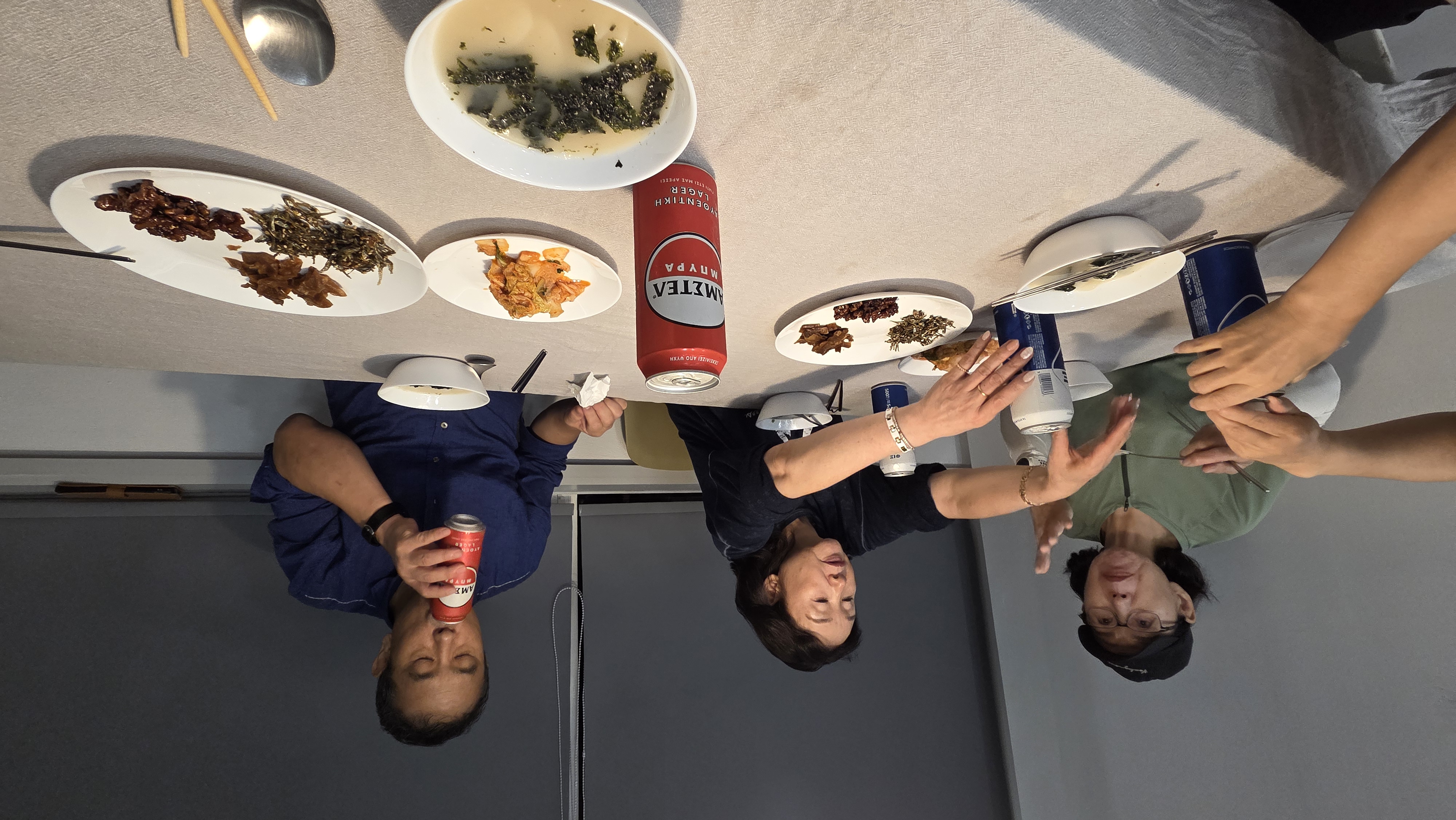 저녁은 간단하게 떡국을 끓여서 그리스 캔맥주와 함께