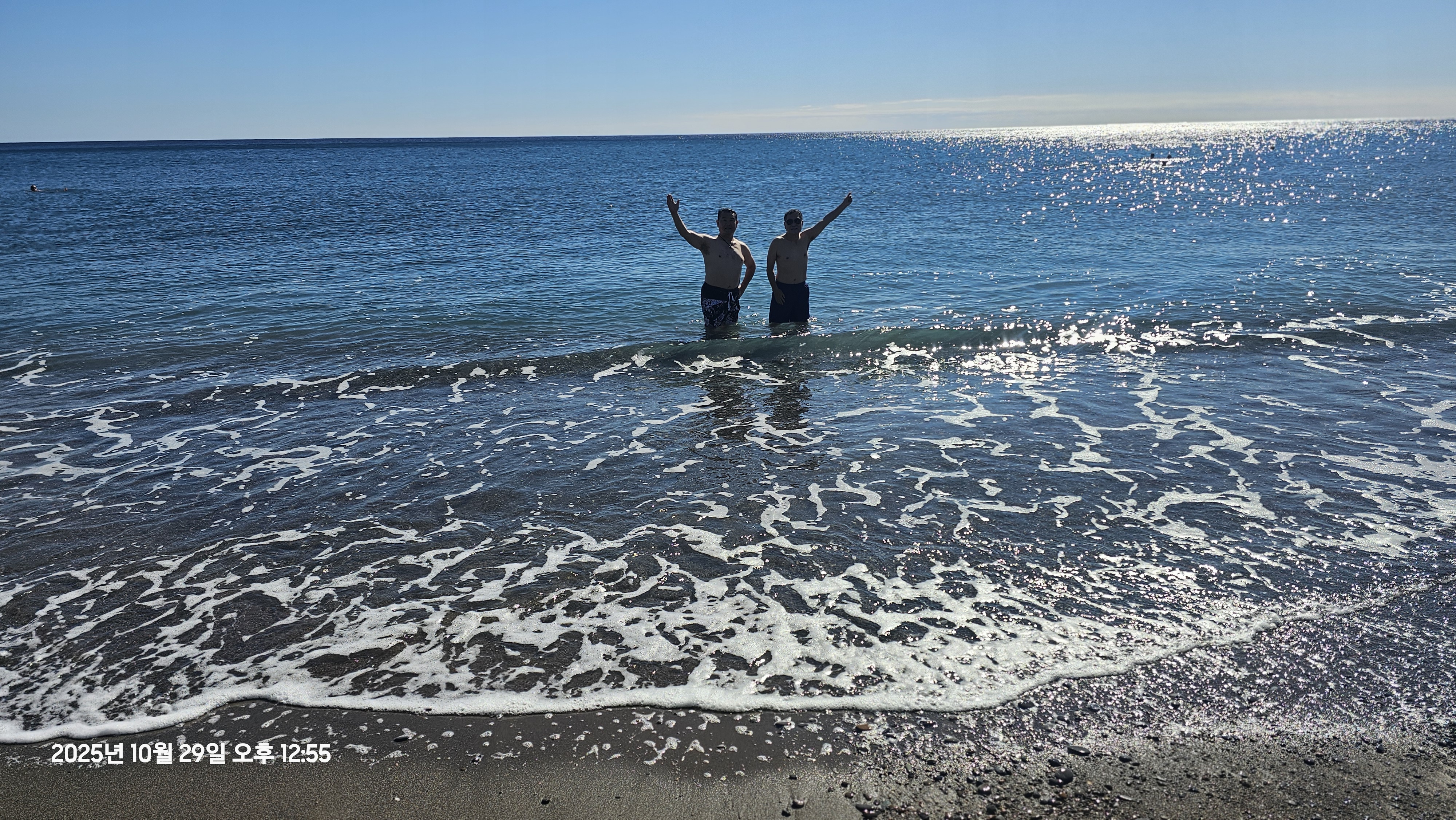 바닷물이 여름날 동해안 해수욕장 정도의 수온.