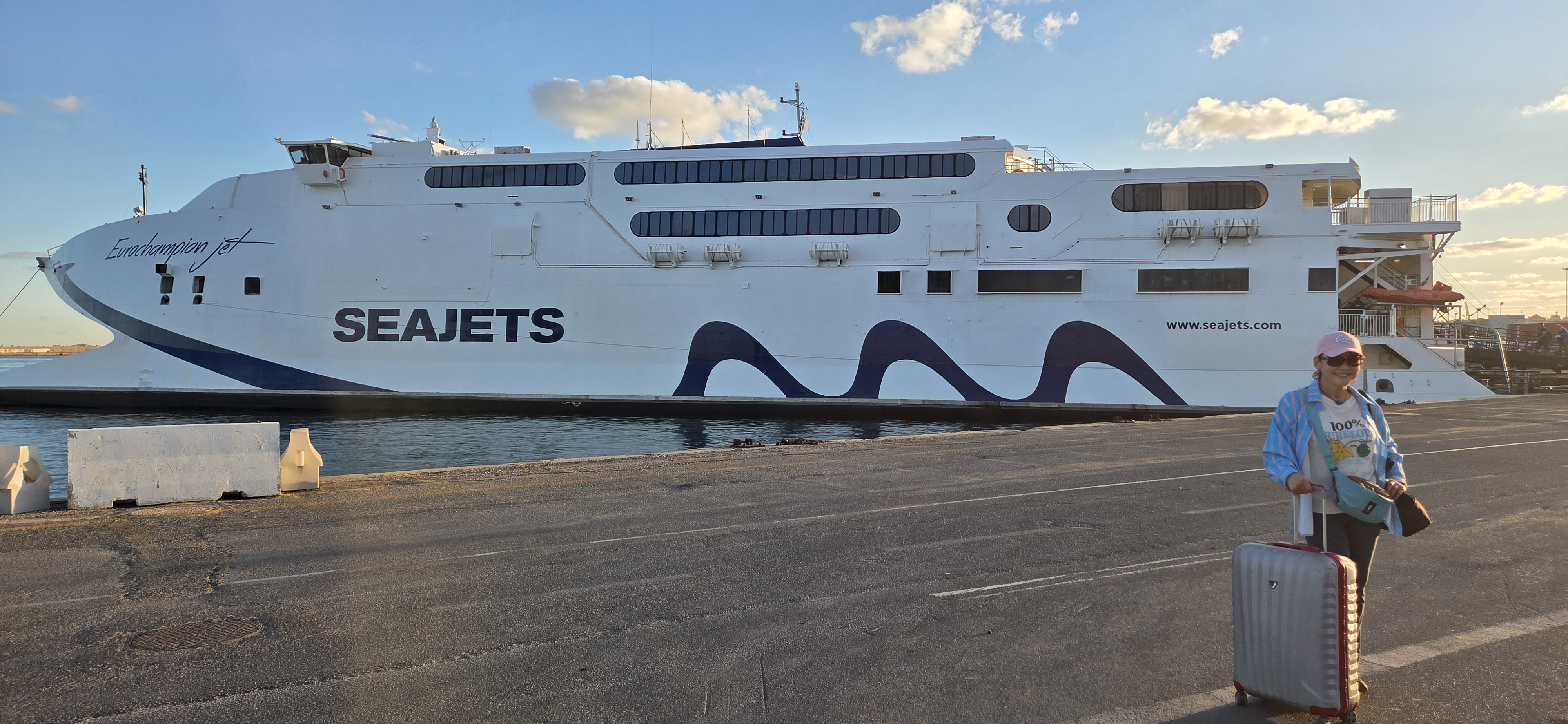 고속 페리를 타고 크레타에서 산토리니에 도착