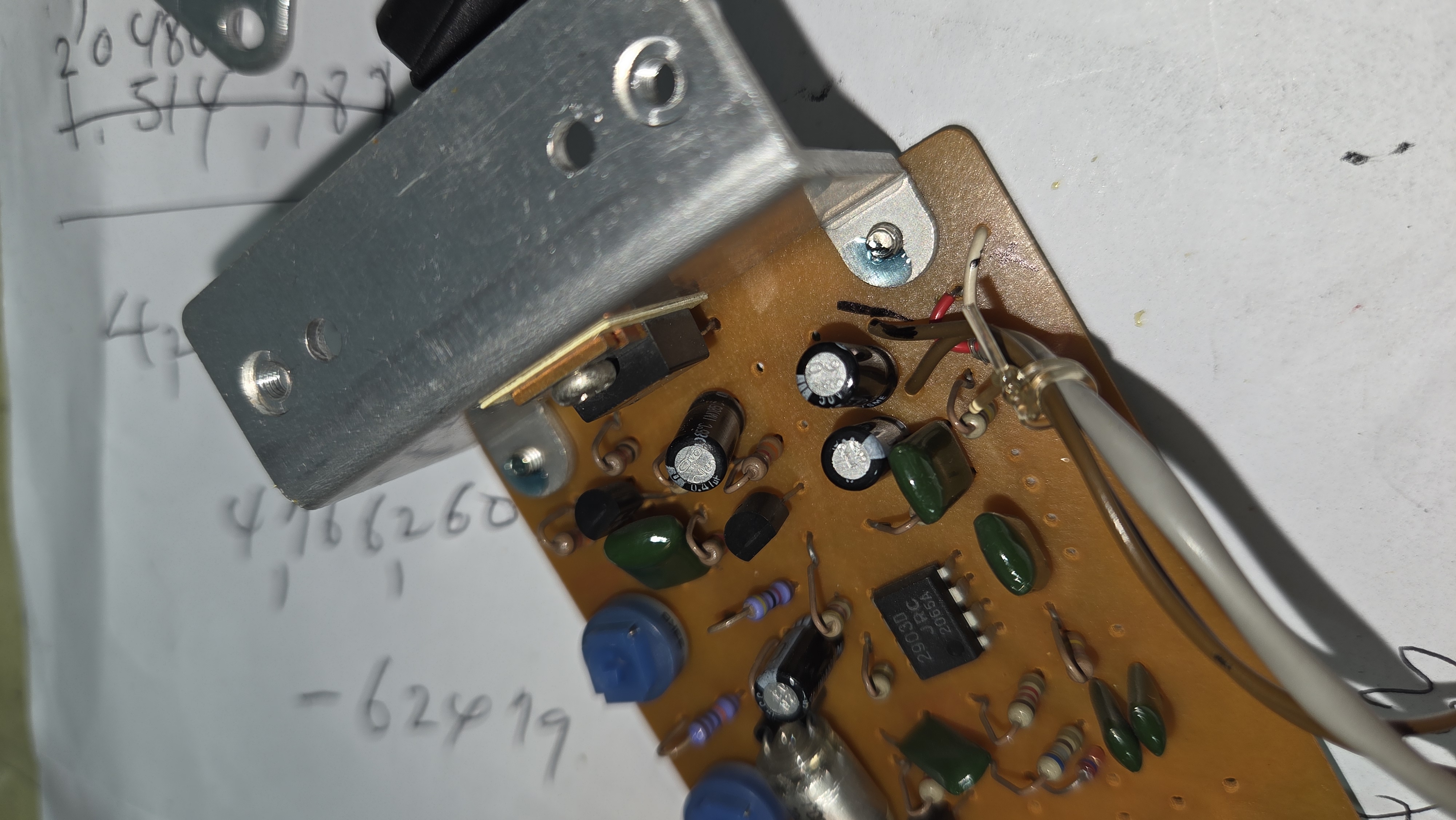 캡스턴 모터 제어 보드 . 종종 이를 제어하는 파워 트랜지스터( 방열판에 붙은 트랜지스터 )가 손상되기도 하는데 트랜지스터 테스터로 체크 해 보니 다행히 살아 있다.