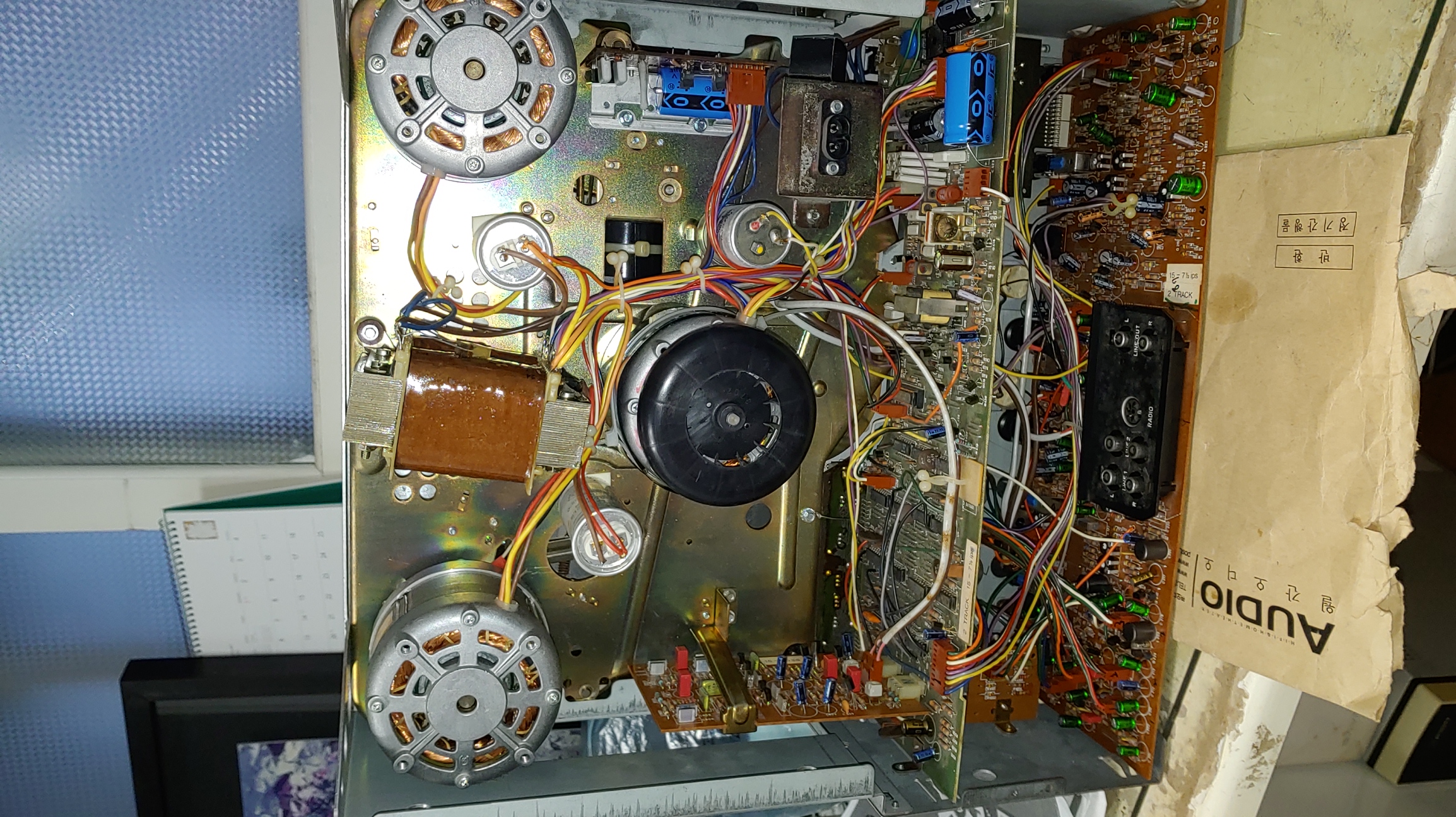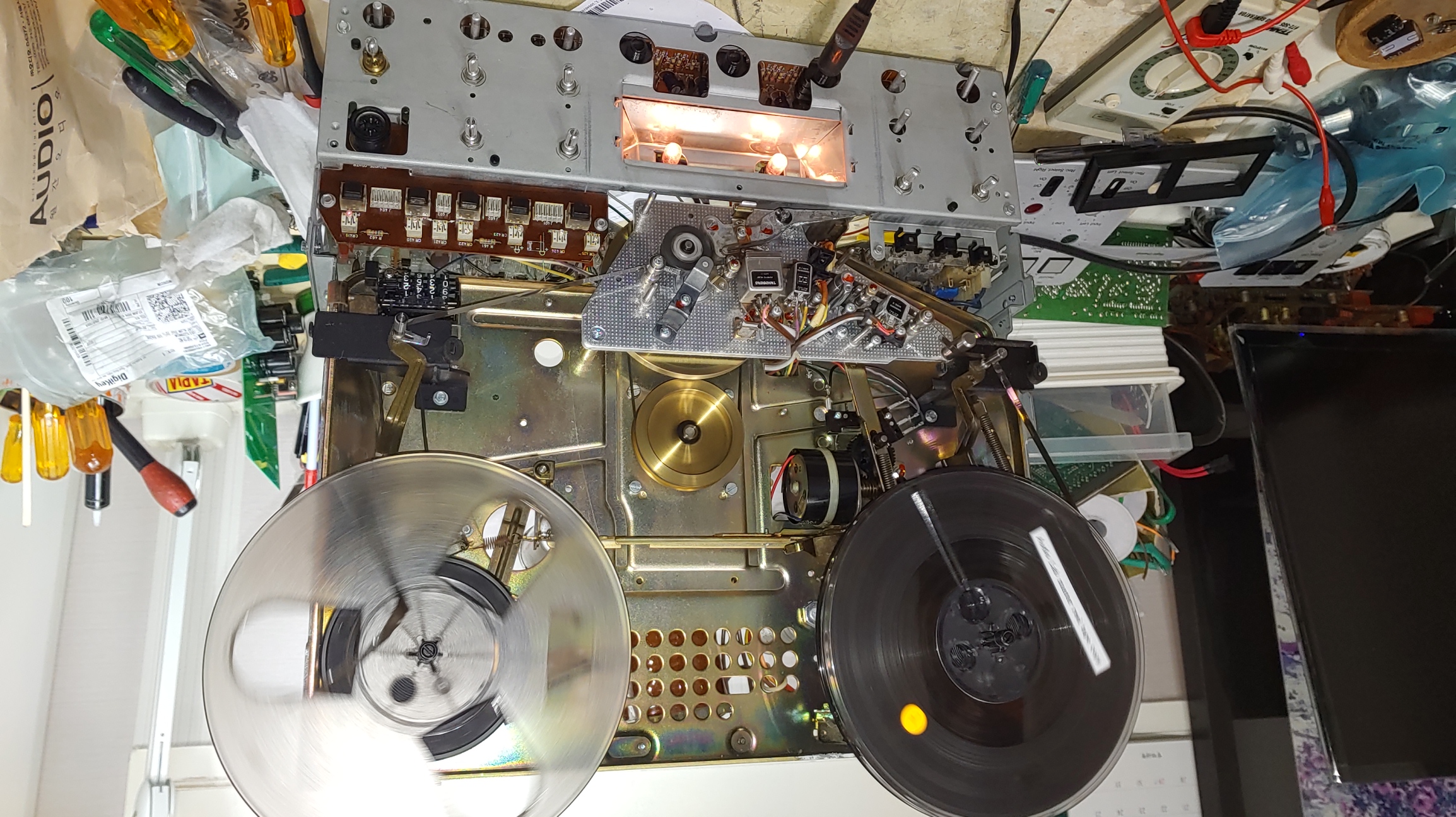조속 구입하여 도착 해서 보니 문제가 많다. 다행히 캡스턴 모터는 돌긴 하는데 play를 눌러도 헤드가 제대로 올라가지 않아 손으로 올려야 겨우 play가 된다. 동작은 되는데 음은 전혀 나오지 않는다. 외부 입력을 넣어 monitor로 해 봐도 음은 전혀 나오지 않고 VU 미터도 움직이지 않는다.