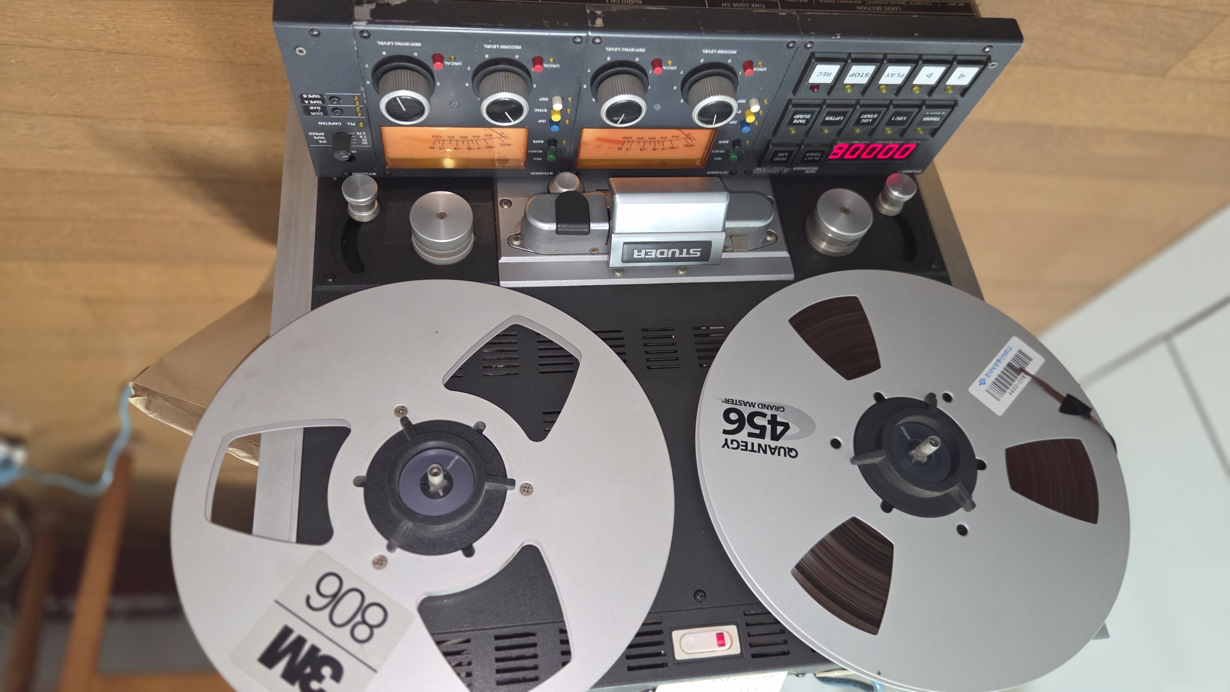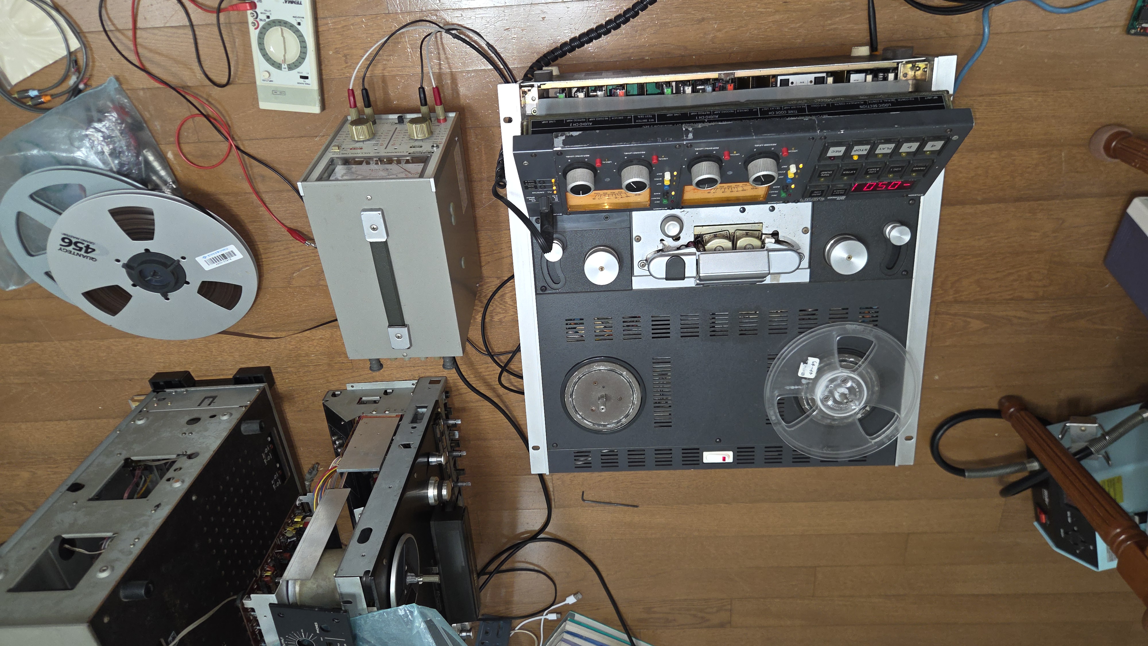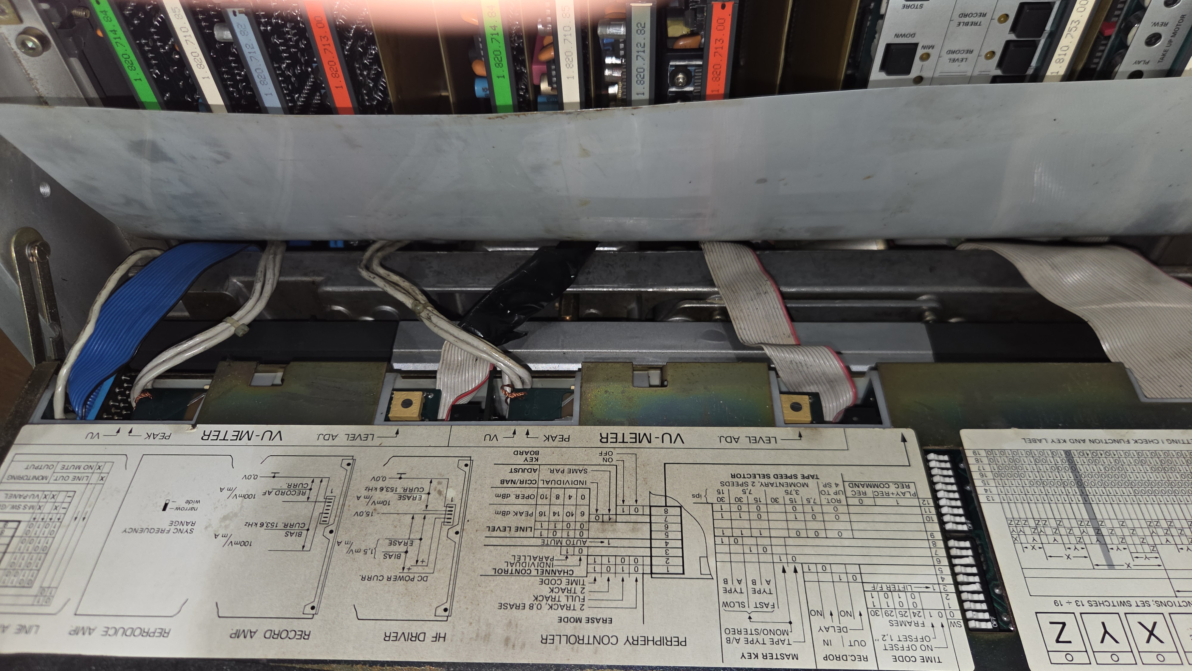 캘리브레이션 중. 15 ips로 NAB와 CCIR EQ를, 7 1/2 ips로 NAB EQ에 대한 재생및 녹음 캘리브레이션을 해야 하기 때문에 캘리브레이션 시간만 2 시간 이상 소요된다.