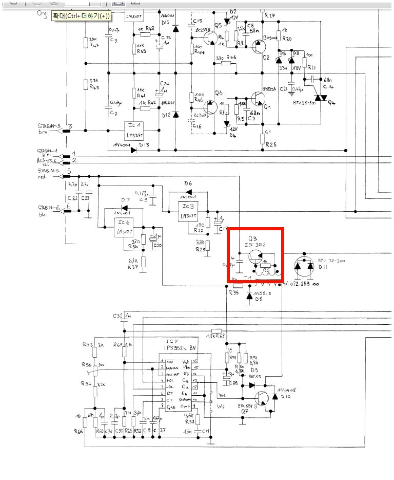 전원부 회로도를 보면서 일단 다이오드 부터 체크 하니 10000uF/63V 전해 콘덴서가 Short 된 것 같다.