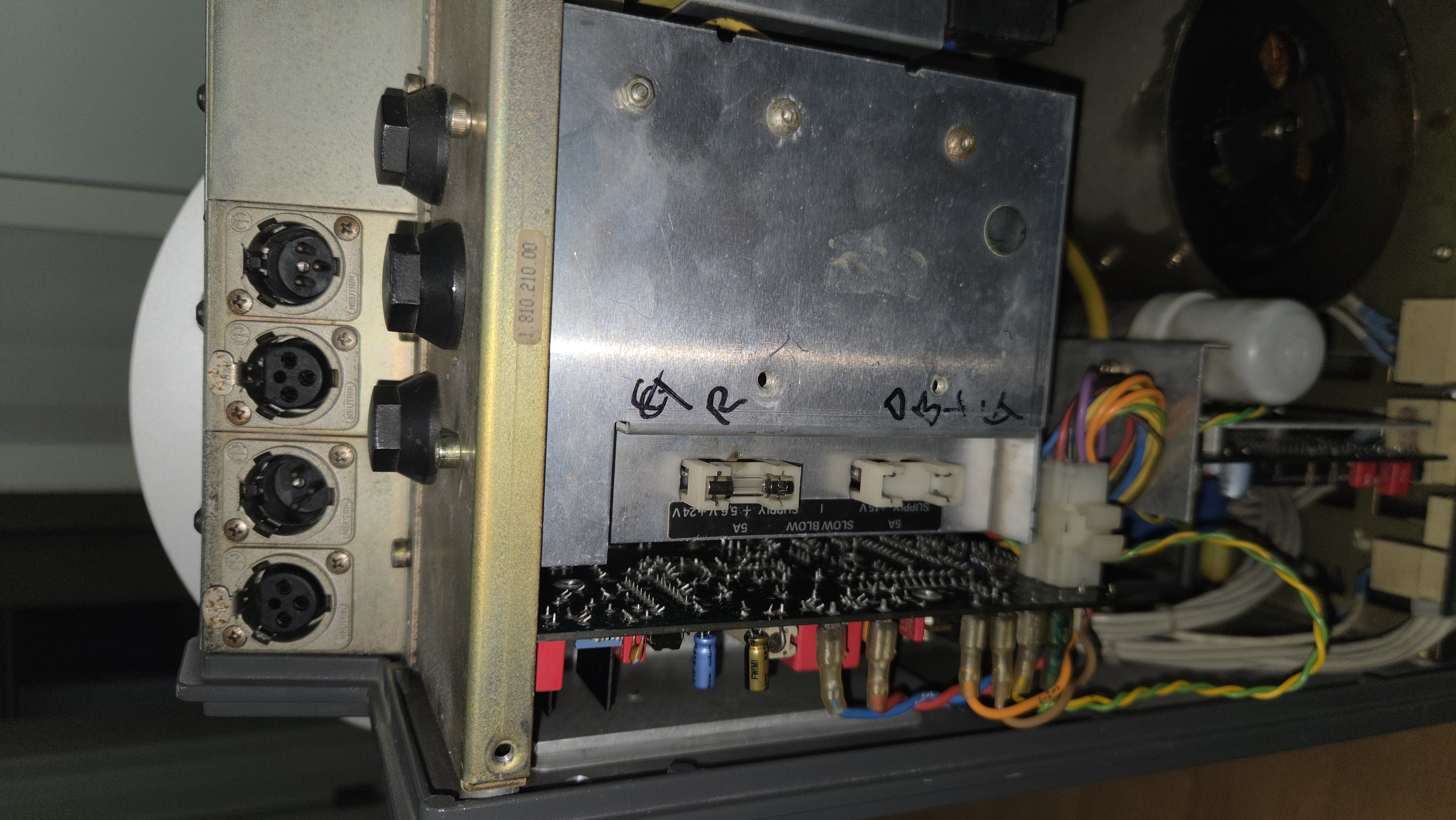 약 3 주전 의뢰 받은 스튜더 A810 릴 데크. 업무용 가운데 가장 성능이 좋은 기기 중 하나이며 2 채널 스테레오로는 업무용중에서도 최고급 기종의 하나이다. 의뢰자는 독일에서 직접 구입 하였다고 하였는데 전원을 넣으면 바로 Fuse가 나가는 상태라서 테스트도 못해보았다고 한다.
