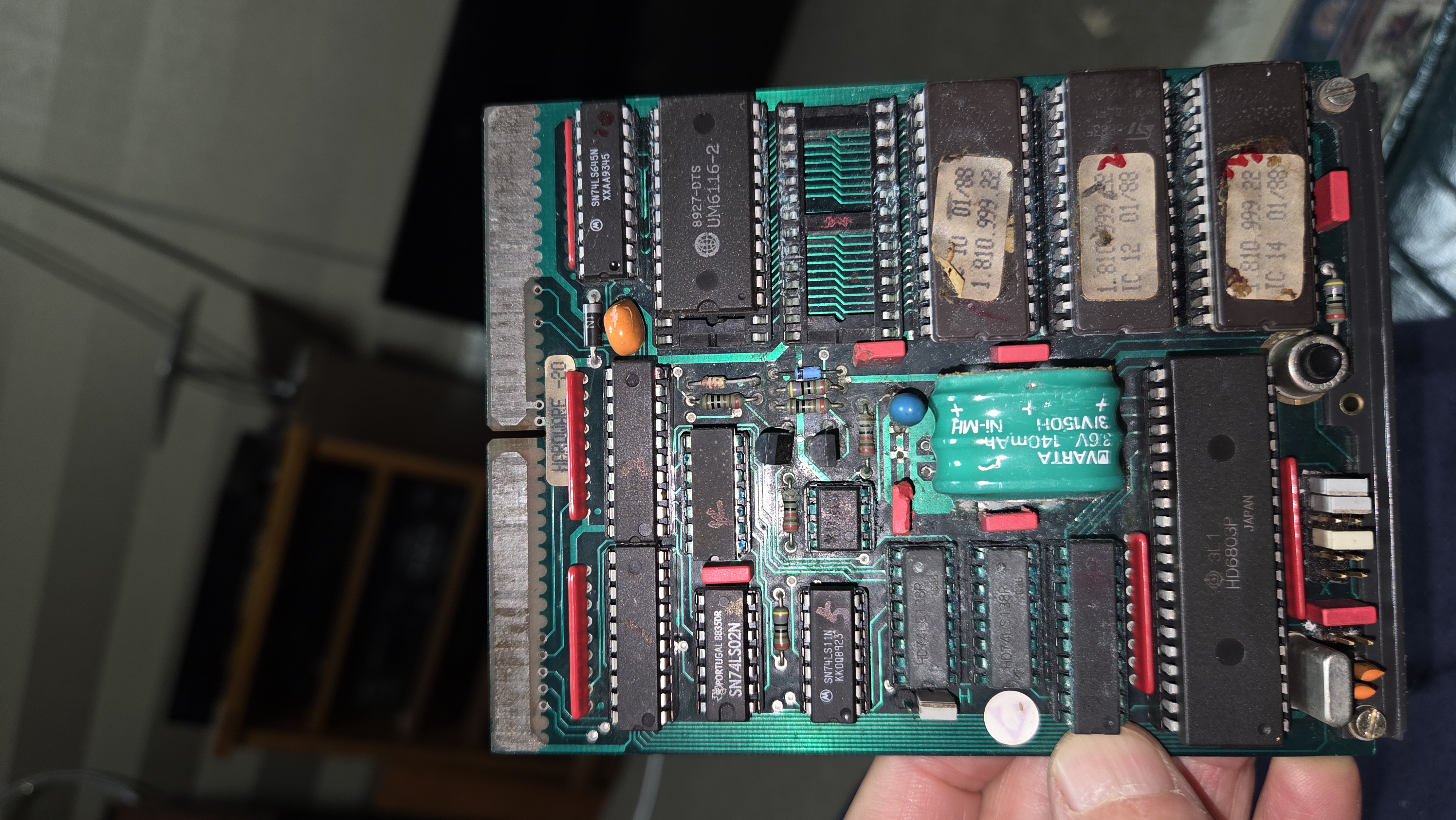 전원은 정상적이지만 동작은 전혀 되지 않는다. A810의 가장 큰 문제 MPU보드의 니켈 망간 전지가 누액이 되어 주변 IC 회로부의 기판 패턴을 파괴 하는 것이다. 이것은 뇌에 해당하는 보드로 이것을 구하는 것이 관건이다.