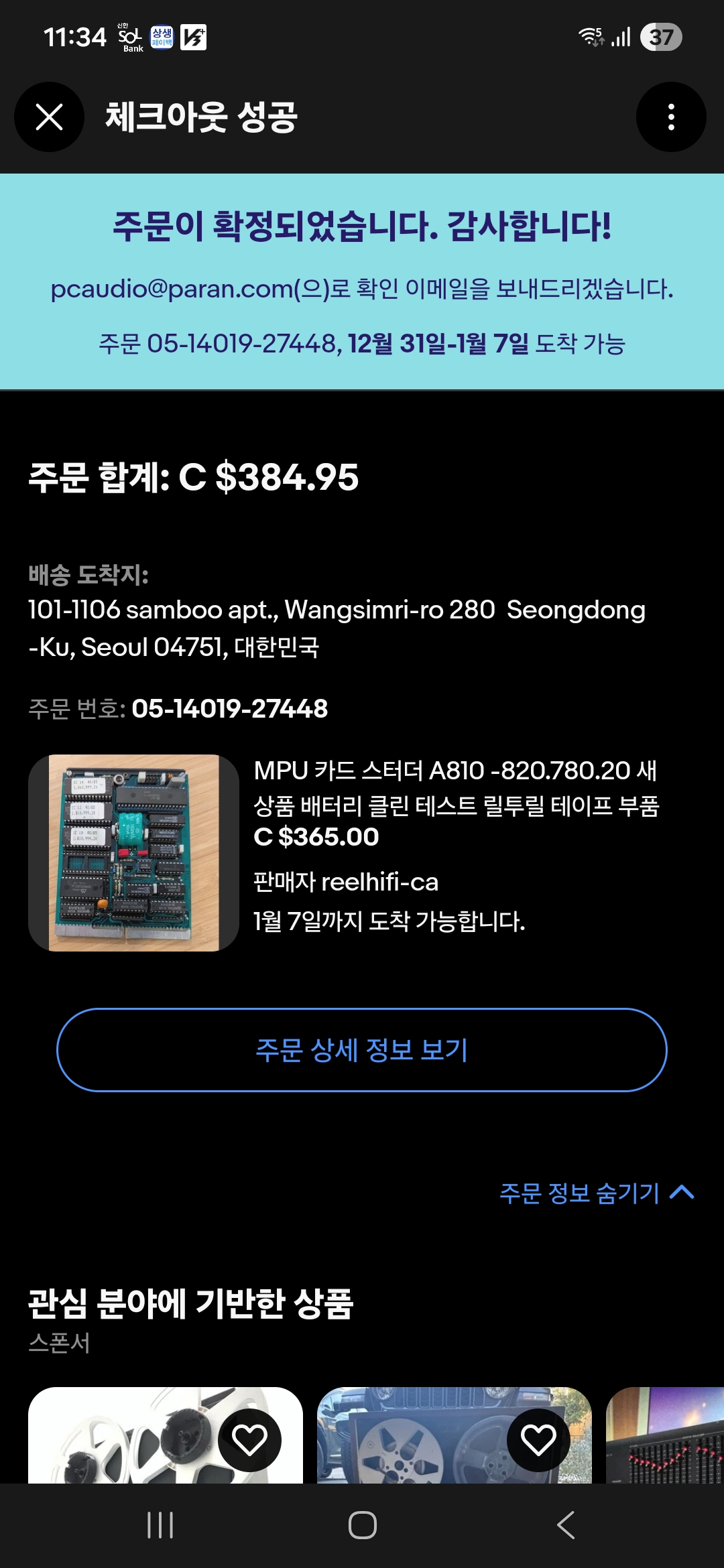 다행히 캐나다에서 중고지만 상태가 좋다는 보드가 하나 남아 있어 구입. 15일 정도 걸려 도착 하였다.