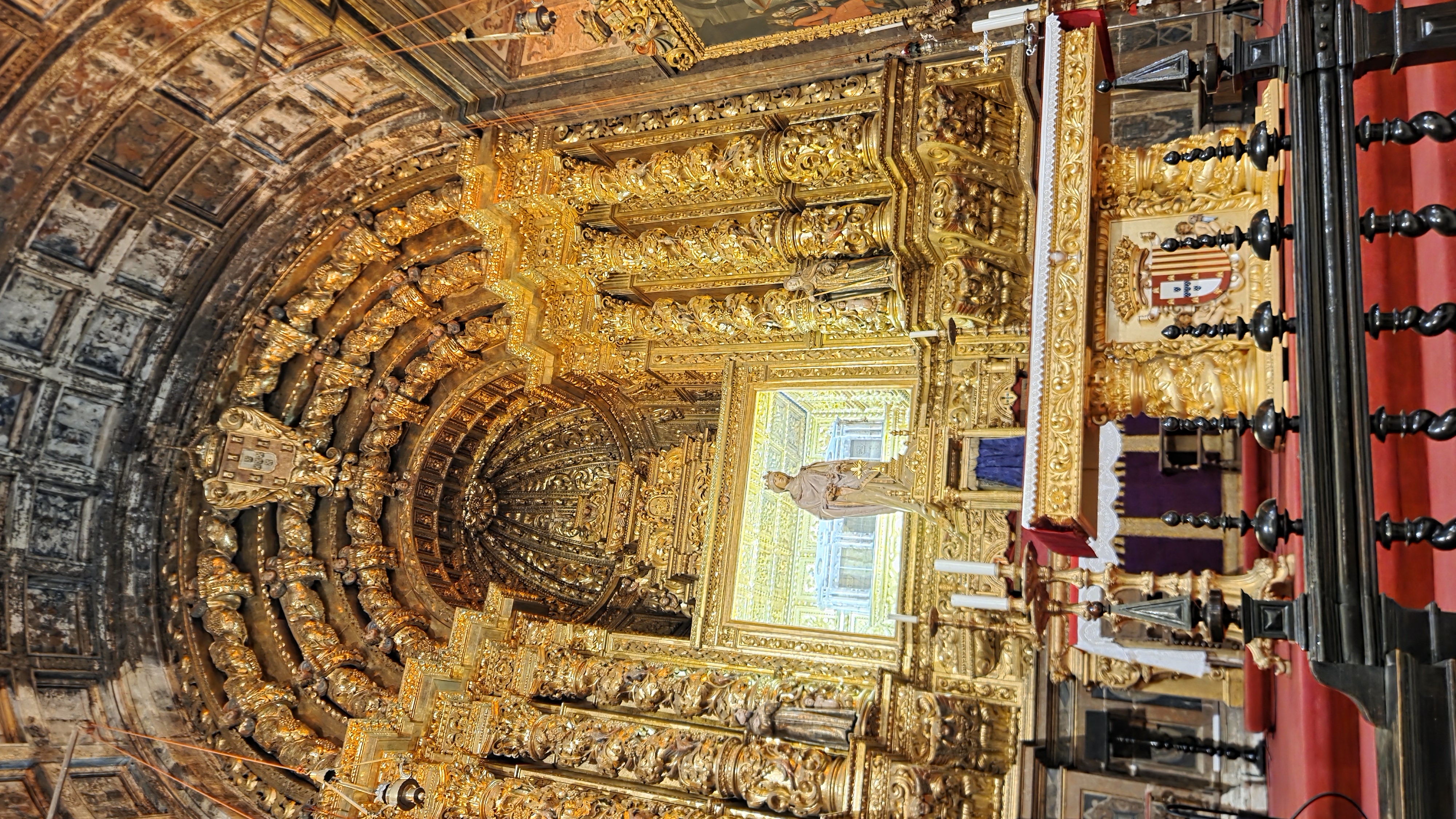 이사벨 왕비 은관이 중잉에 있다. 온통 황금 장식