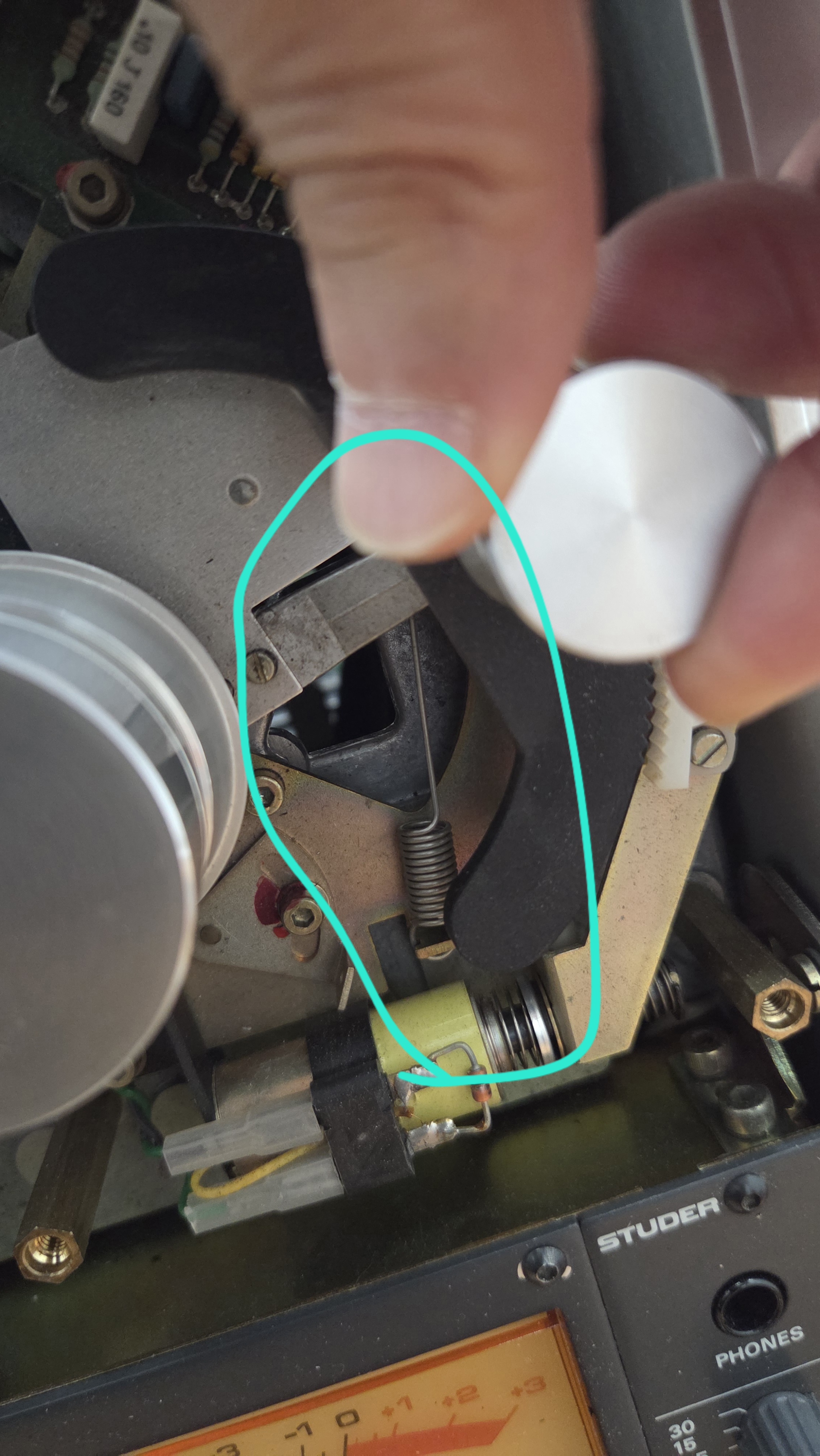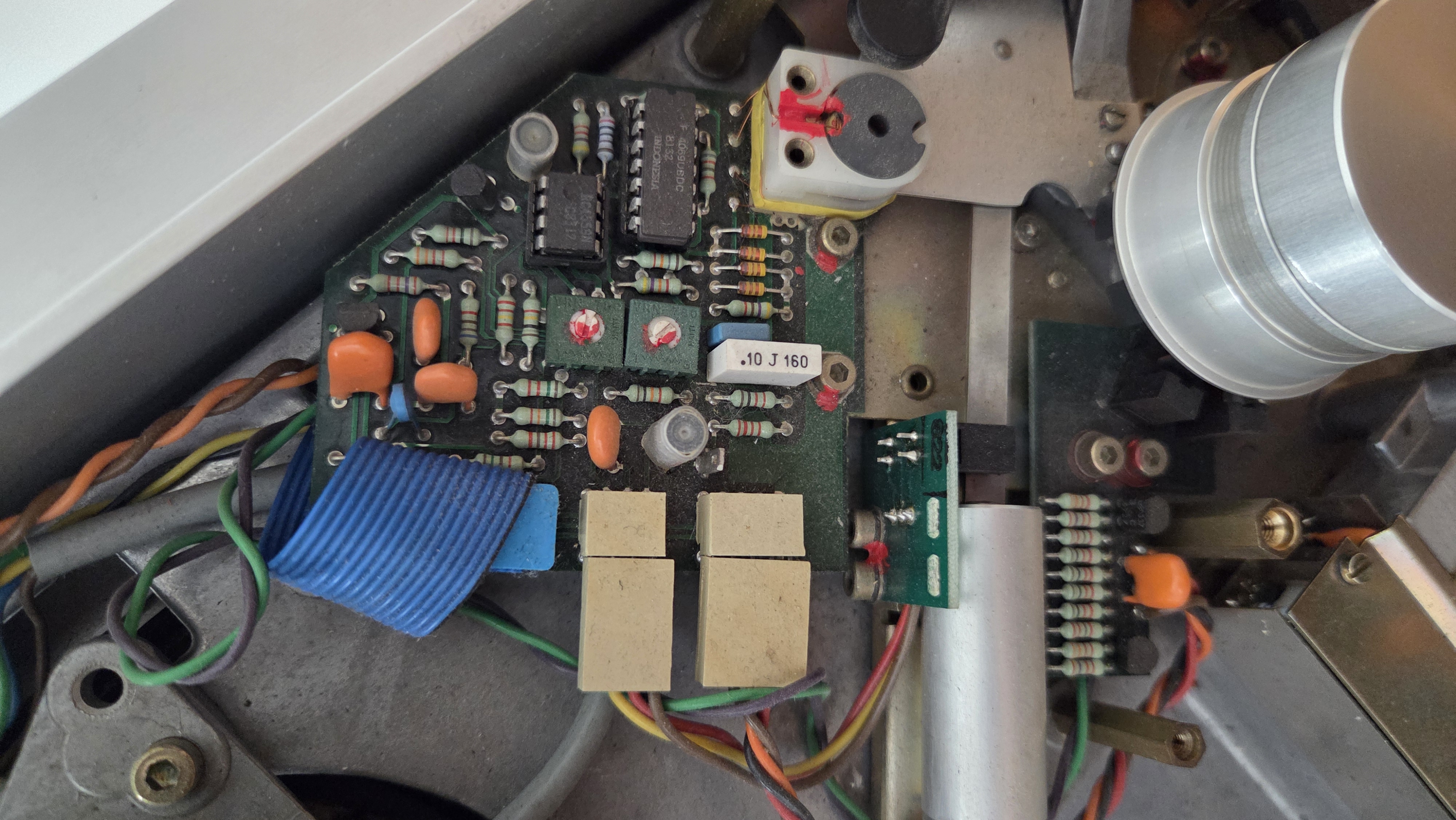 일단 입고 테스트로 1 KHz tone 주파수를 재생하여 보니 약간의 우우 하는 소리가 들린다. 이는 핀치롤러가 노화 되어 표면이 닳아 테이프를 제대로 캡스턴 모터 축에 밀착 시키지 못하거나 미세한 slip 현상이 일어날 때 생기는 현상이다. 재생은 그런대로 사용에 지장이 없지만 녹음까지 하면 그 영향이 배가 되어 조치가 필요하다. 내부를 열어 핀치롤러를 밀어 올리는 Solenoid 간격을 끝까지 올려 보아도 별 소용이 없다. 결국 새로운 핀치롤러가 필요한데 마침 보유하고 있는 것이 소진되어 독일에 주문을 넣었다.
