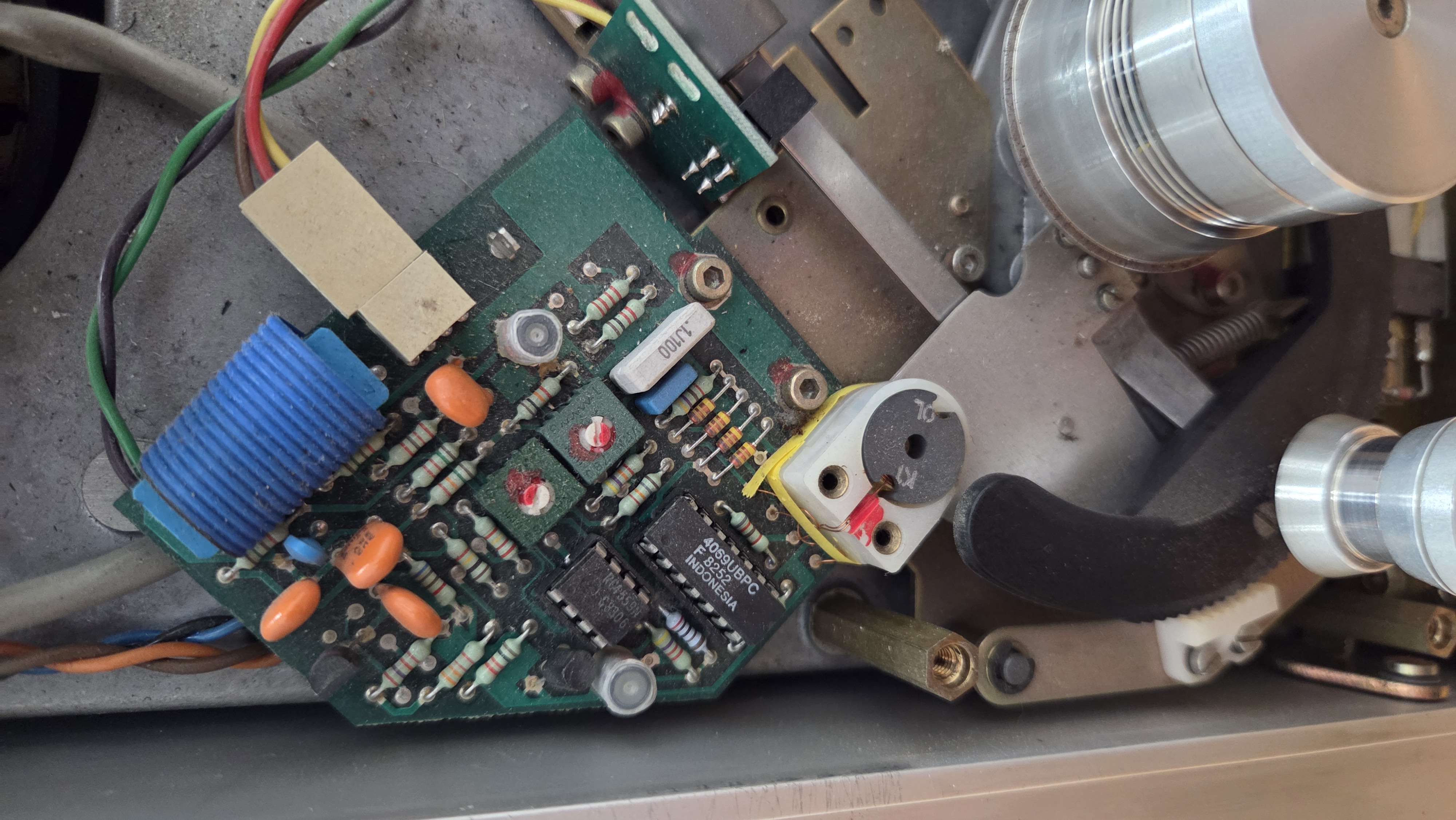 테스트를 해보니 분명 음이 크게 늘어진다. 그런데도 캡스턴 모터 PLL 회로는 정상적으로 작동함을 알려주는 노란색 LED가 점등되어 있다. 그러므로 Capstan motor 는 정상적인 속도로 돌고 있다는 것을 알수 있다.