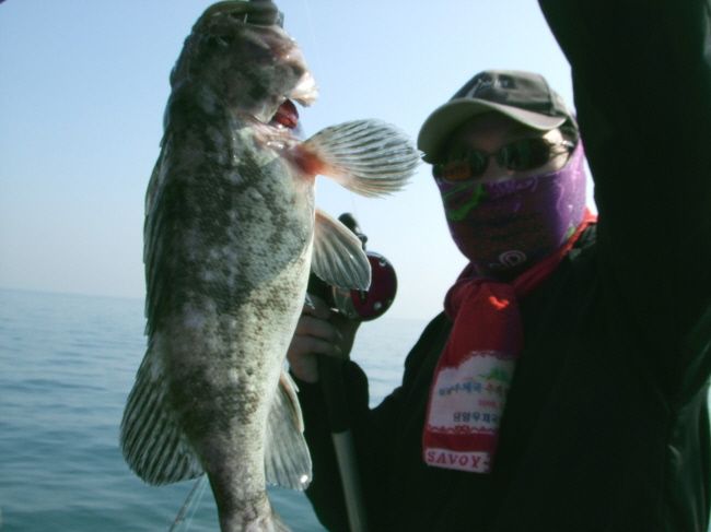 광어 50 센치 급 2 마리 포함 6 마리, 우럭 37 센치급 1 마리 포함 2 수, 양태( 장대 ) 1 수