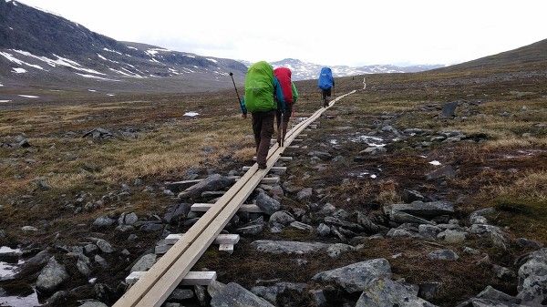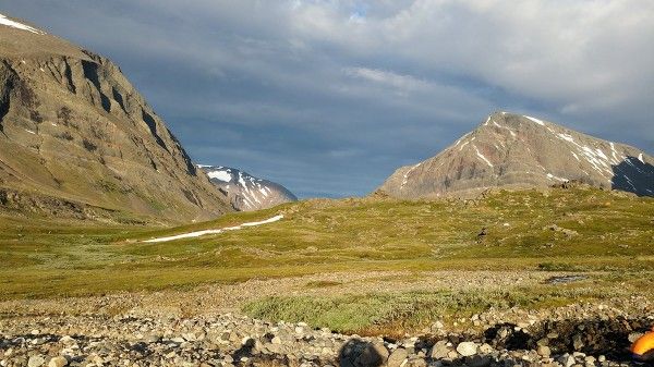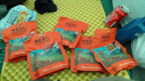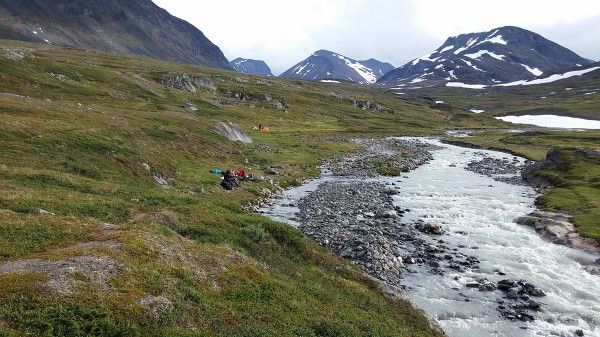 알레스하루레 산장 3 Km 정도를 남기고는 비가 간간이 뿌리기 시작하여 우비를 입고 걸었다. 산장 바로 앞에는 정말 큼직한 케밥과 콜라를 150 크로네에 팔고 있어 우리는 이것으로 저녁을 대신하고 비가 본격적으로 올 것에 대비 텐트를 쳤다.