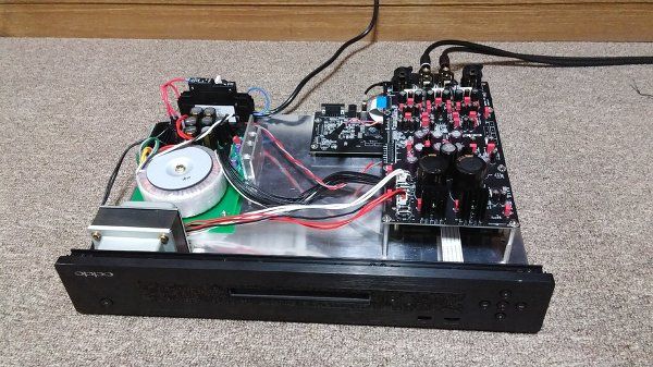 아날로그 2 채널 보드는 받자 마자 개조 했습니다. 클럭도 100 MHz 고정밀 TCXO로 바꾸어 좀 더 섬세한 음장감과 새로이 384KHz 음악 파일에도 대응하게 했습니다 . 오포 105 아날로그 보드의 가장 큰 문제점인 밸런스와 언밸런스 출력 콘덴서를 전해 콘덴서로 사용한 것을 직결 ( 또는 파워 앰프와 직접 연결시는 필림 콘덴서로 교체 해야 함 ) 하고 이 부분의 다이오드도 쇼트키 배리어 다이오드로 교체 했습니다.