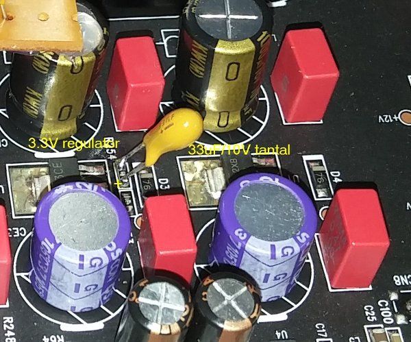 5. put 33uF/10V tanatal cap between the adjust tap and ground of 3.3 V regulator