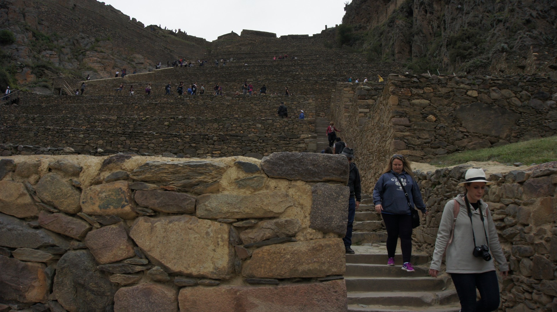 마을을 지나니 유적지가 나타난다. 중앙에 아르마스 광장이 있고 왼편으로는 짓다 중단 된 신전이 보이고 중앙 부분은 계단식 농지이다. 다소 가파른 계단을 올라가면 건너 편 산에 독특하게 생긴 구조물이 보이는데 곡물 창고라고 한다. 곡물이 잘 마르고 상하지 않게 보관할 수 있도록 햇볕과 바람의 영향을 고려하여 지은 것이라고 한다.