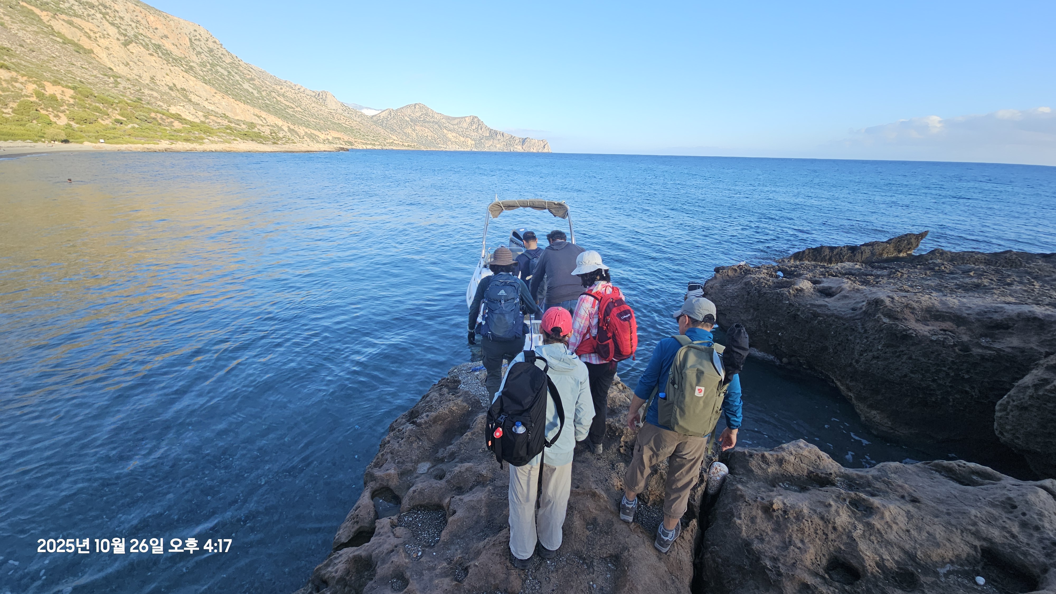 바스를 타기위해 Paleochora 마을까지 보트 택시로 이동