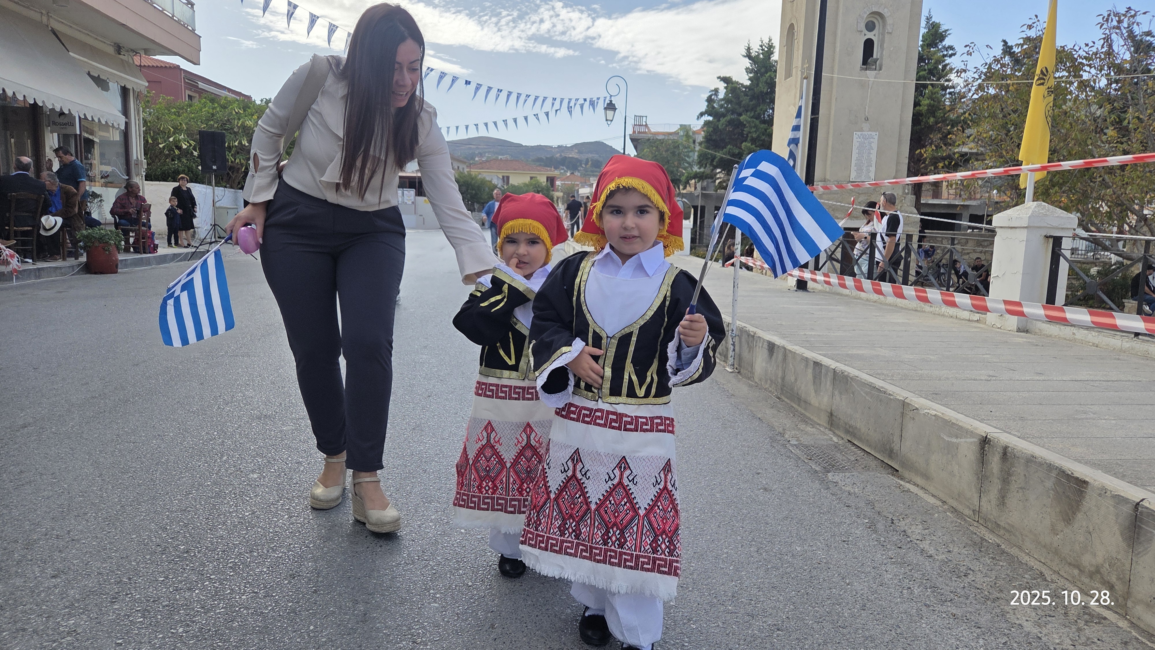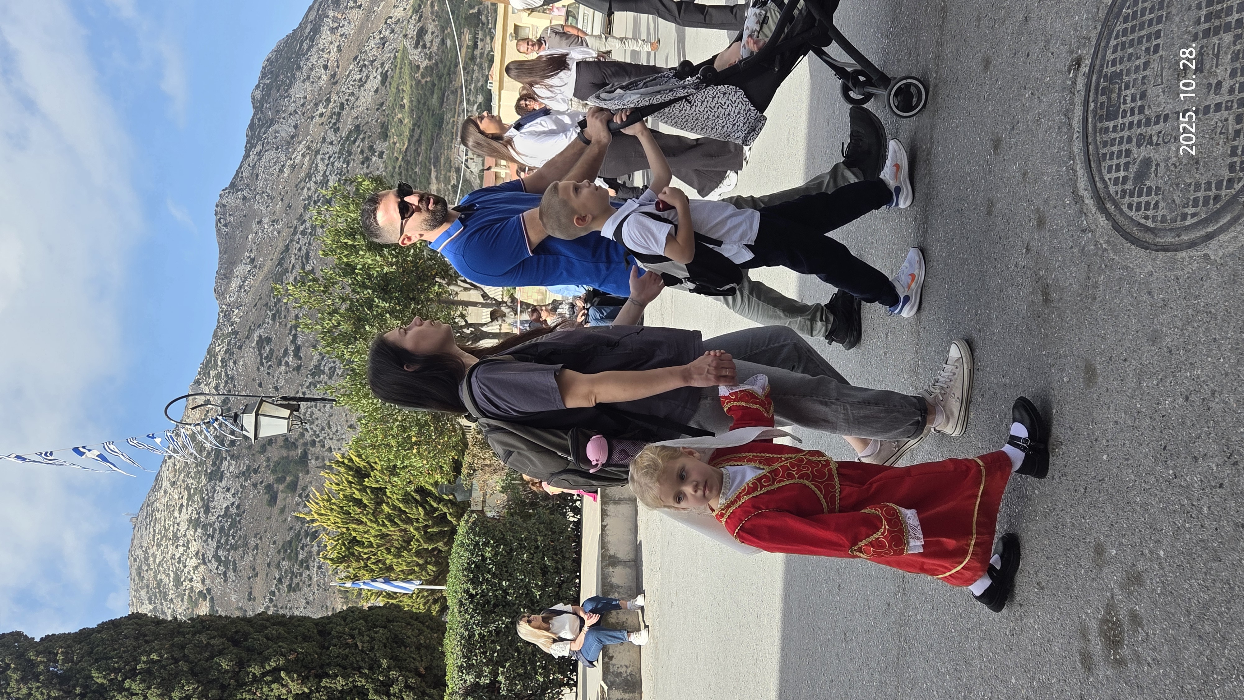 Oxi day 국경일을 기념하는 퍼레이드가 12시부터 마을광장에서 진행되었다.