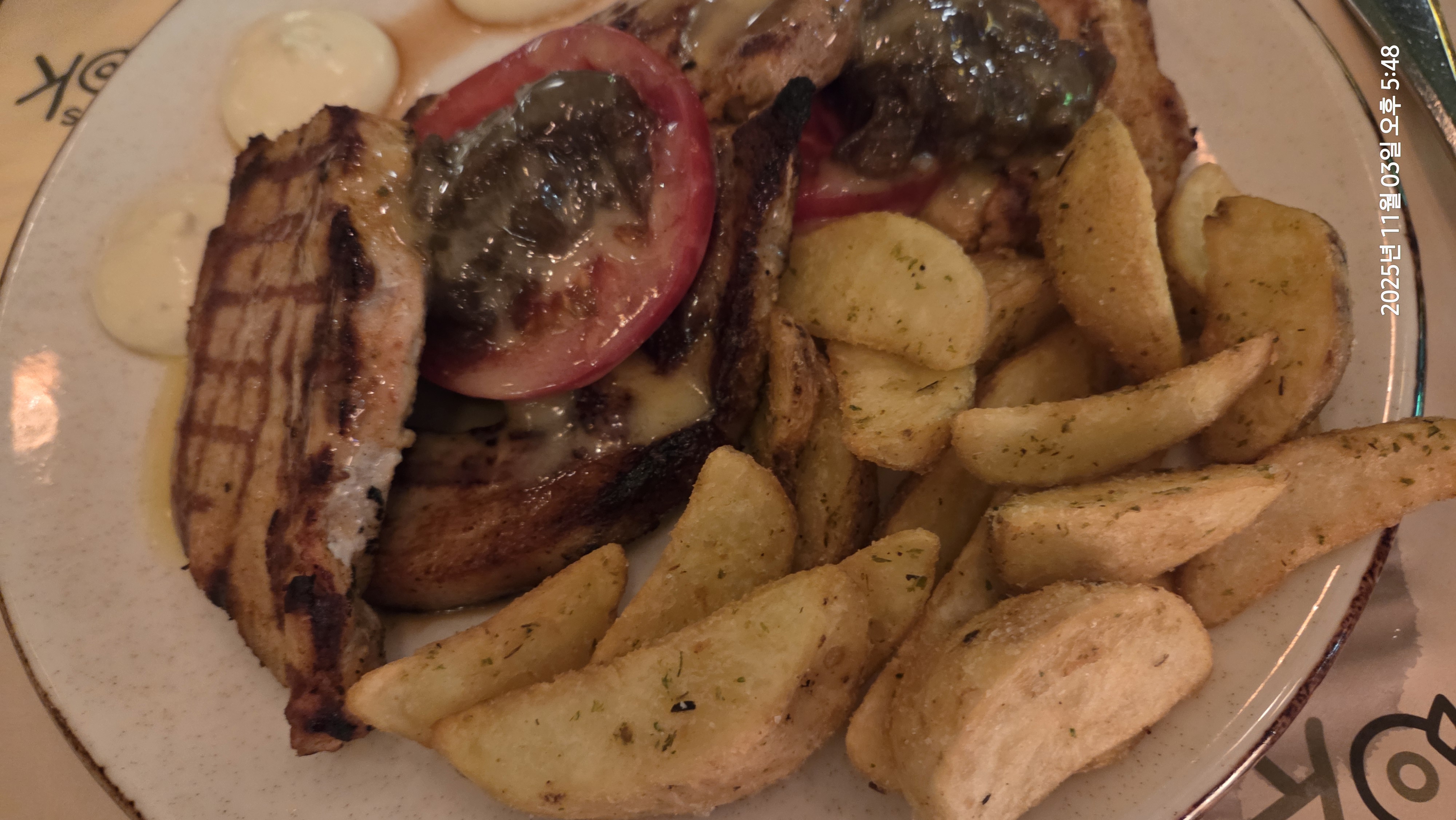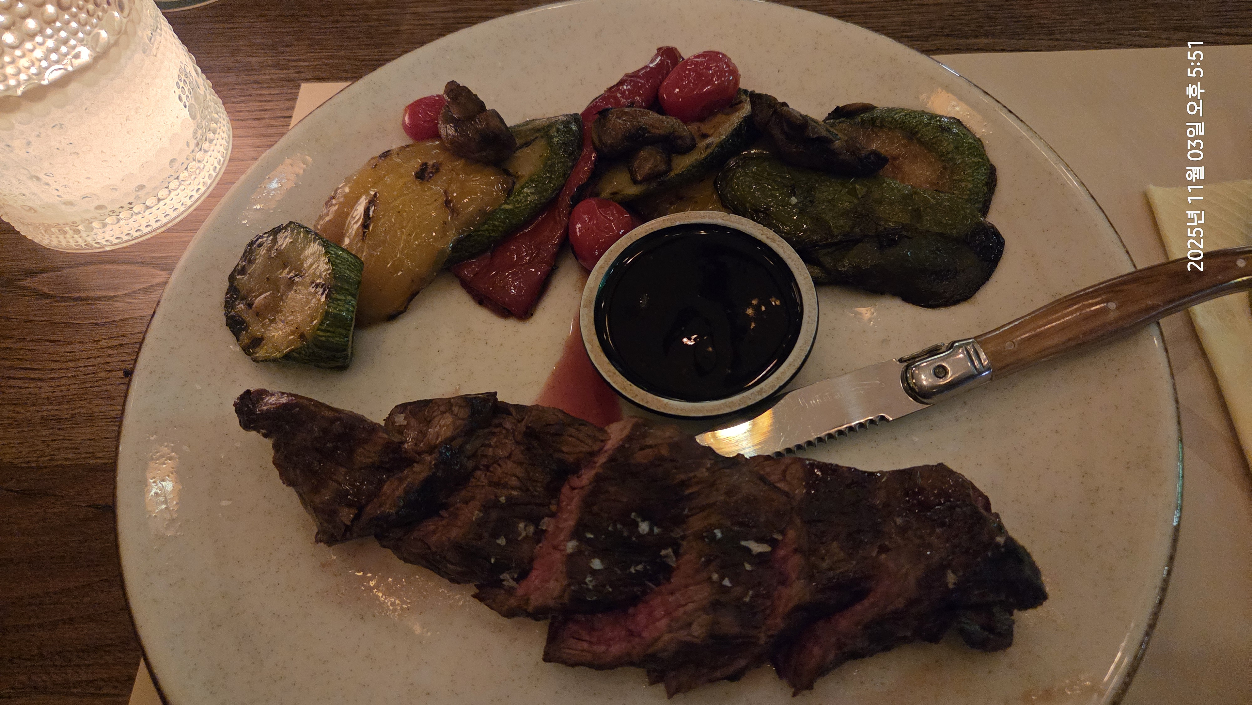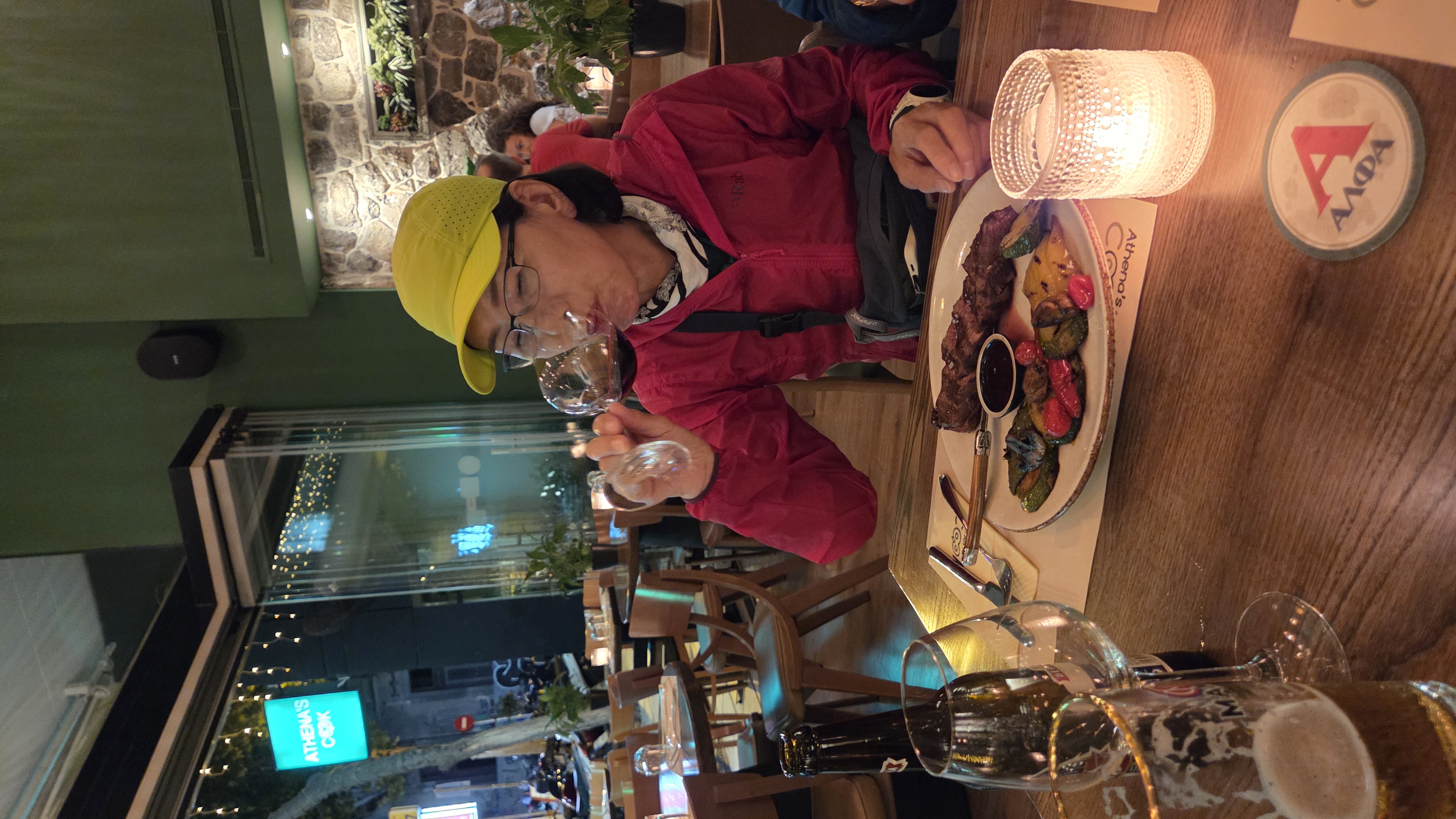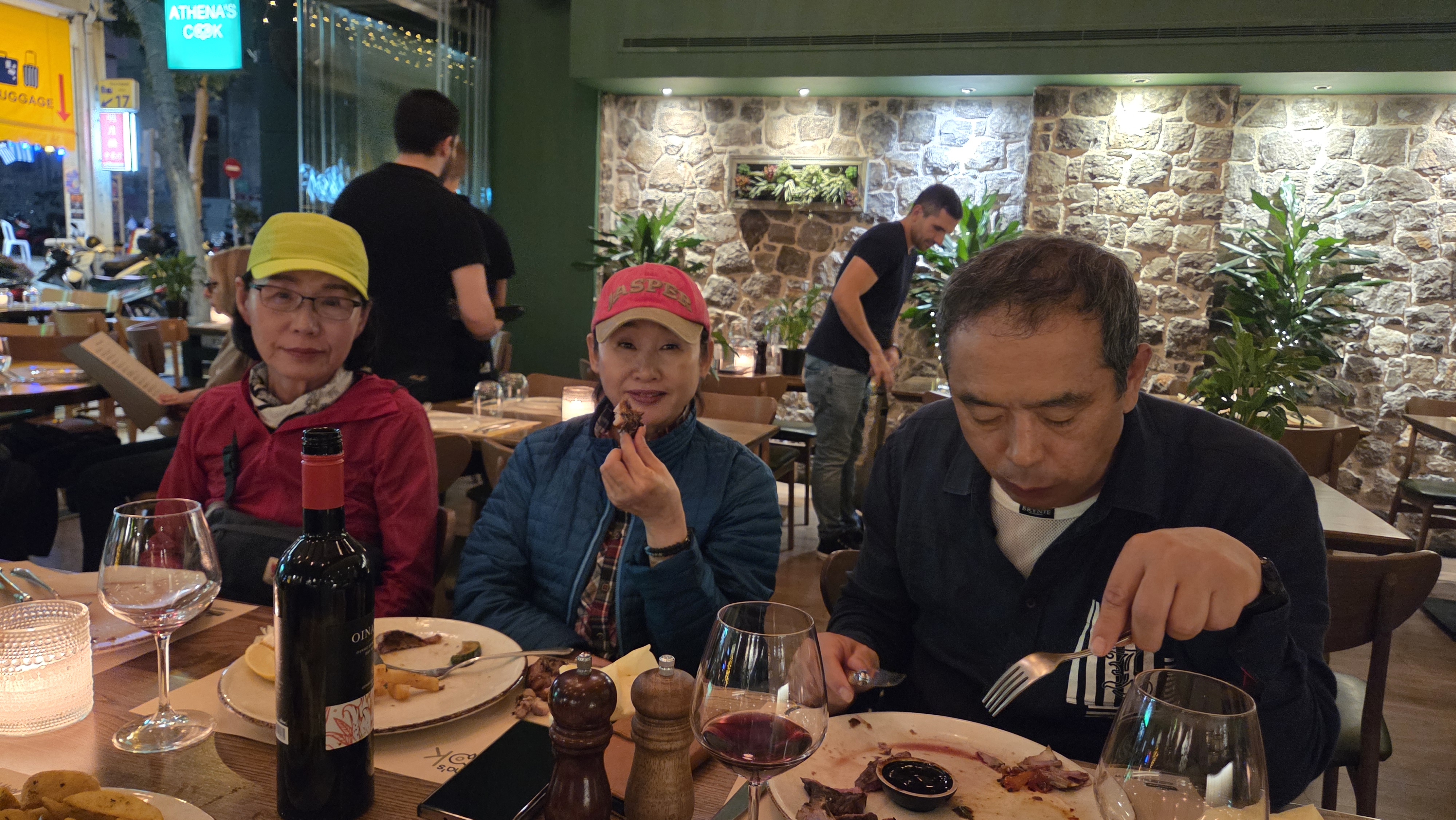 그리스 고급 와인과 함께한 비프 스테이크와 양고기 구이가 정말 맛있었다.