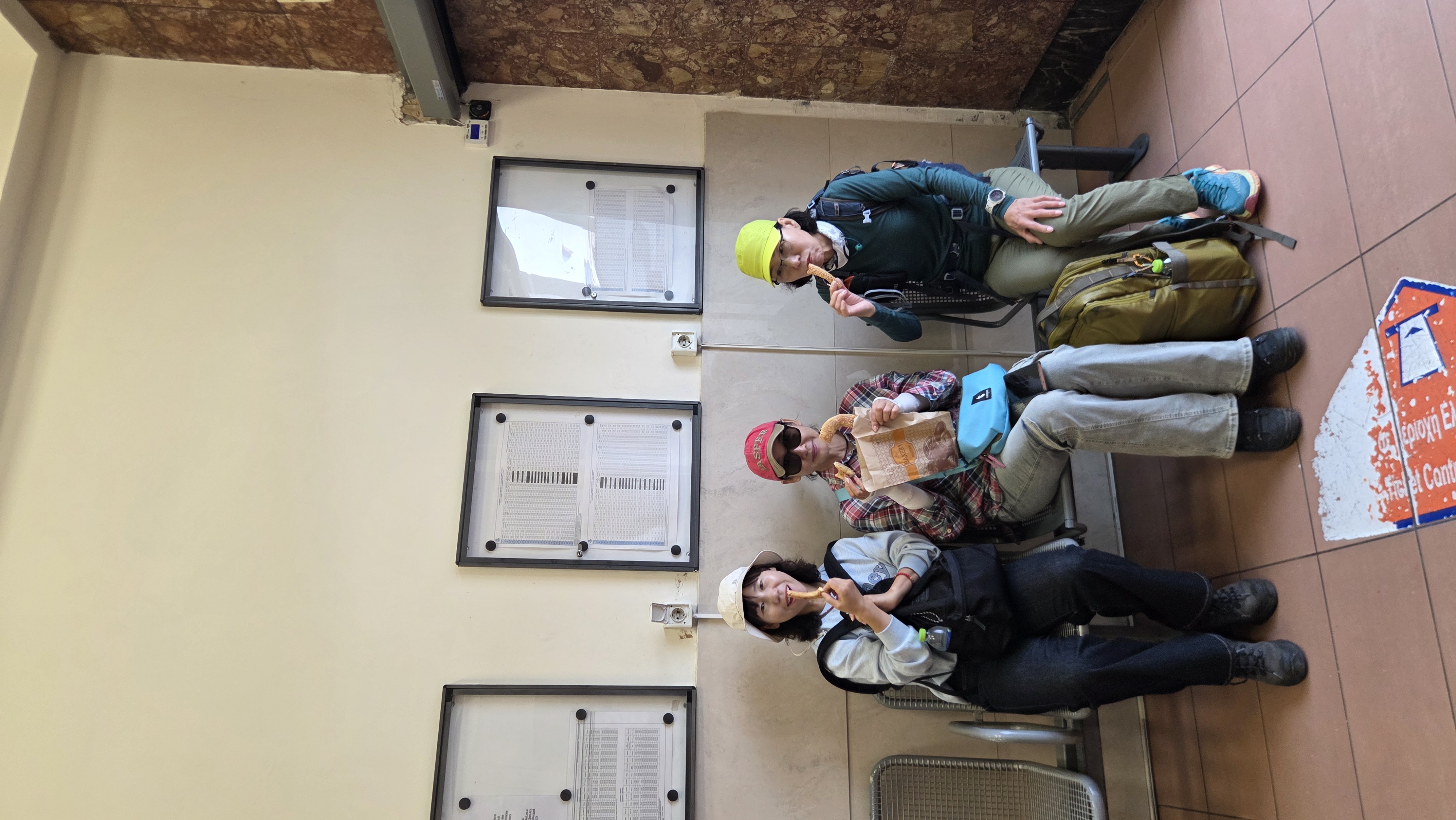 역앞 노점상에서 산 깨를 듬뿍 바른 빵이 의외로 맛있다.